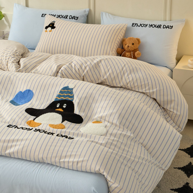 秋冬加厚全棉磨毛高级感纯棉四件套可爱卡通萌趣床单床笠款床包组