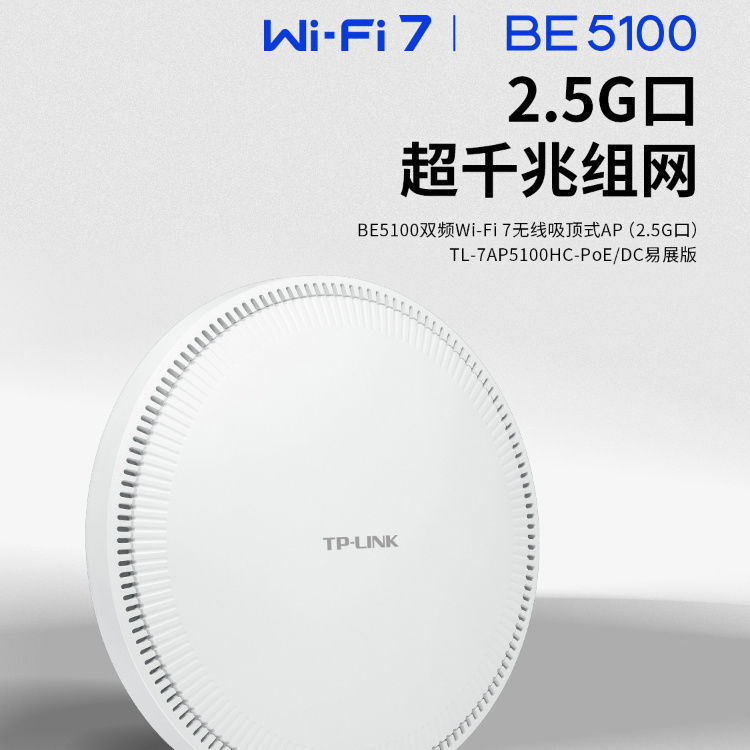 TP-LINK TL-7AP5100HC-PoE/DC易展版2.5G网口Wifi7吸顶ap全屋w