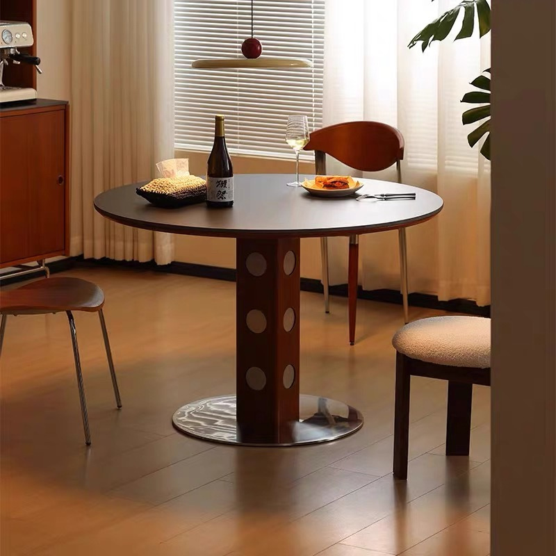 米阿巴中古圆桌复古金属腿圆形餐桌小户型北欧包豪斯实木岩板饭桌