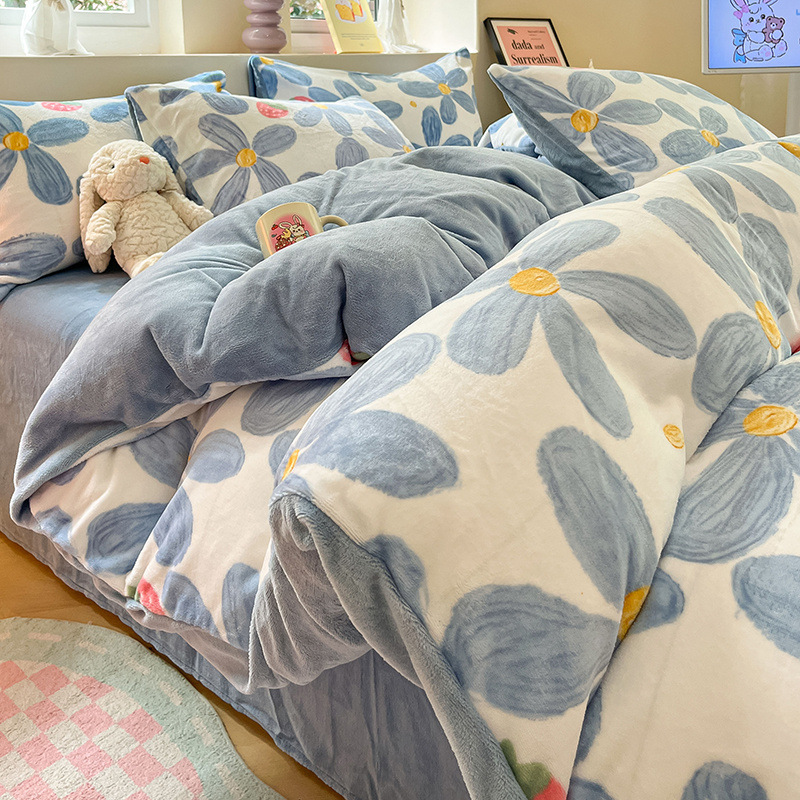 2024网红卡通小清新牛奶绒四件套珊瑚绒法兰绒三件套床上