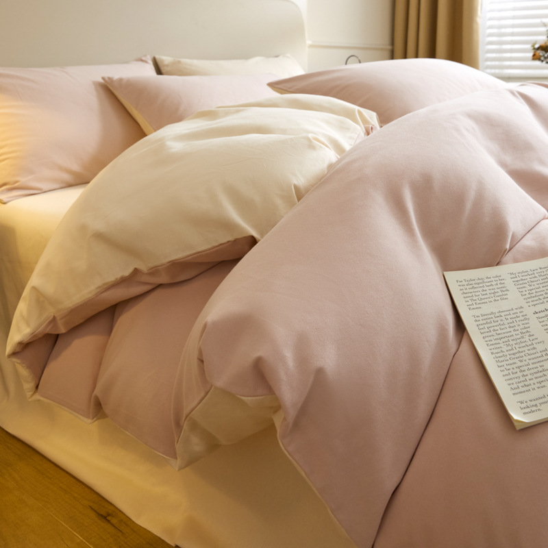 北欧风秋冬季A类80s支全棉纯色加厚磨毛四件套纯棉床上用