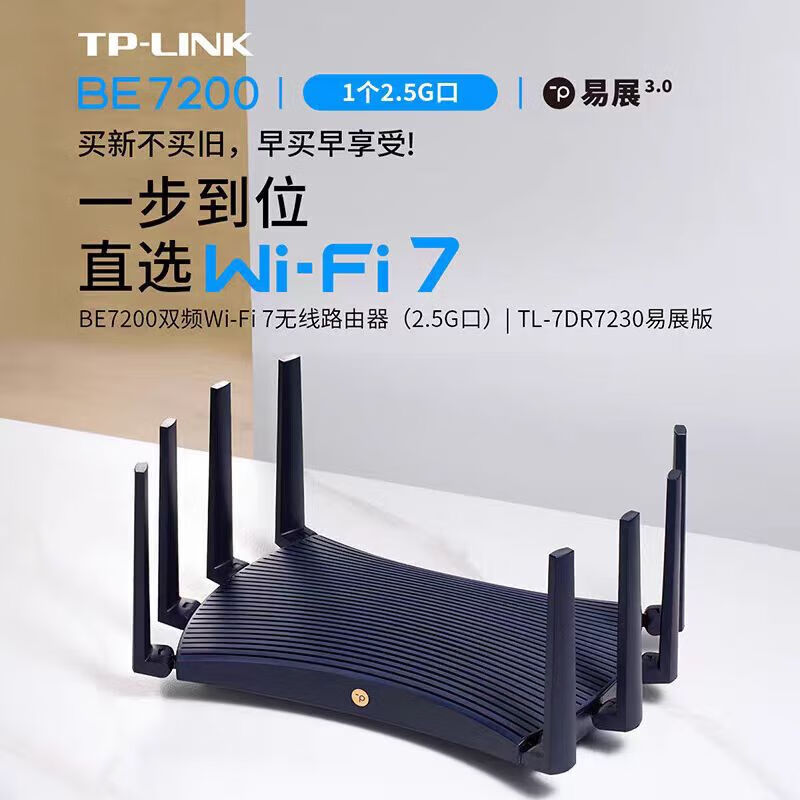 TP-LINK TL-7DR7230易展版 BE7200双频Wi-Fi 7无线路由器2.5G口