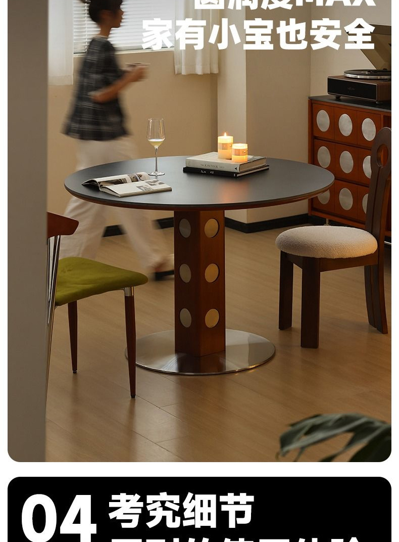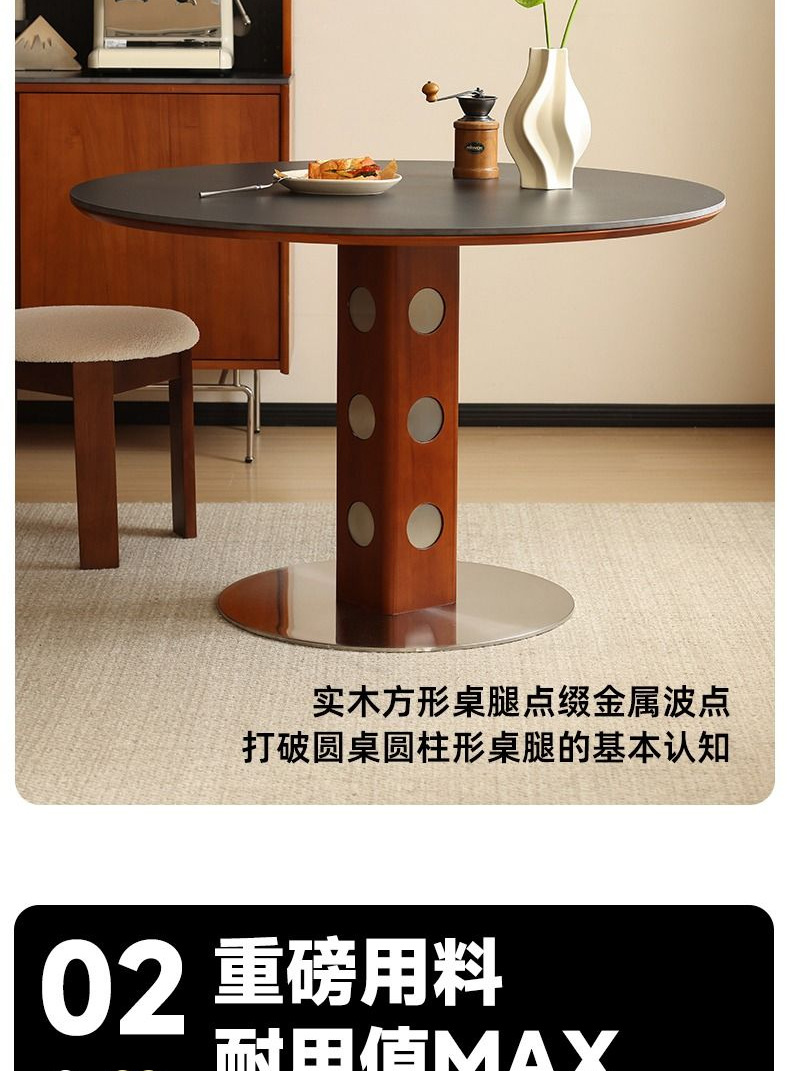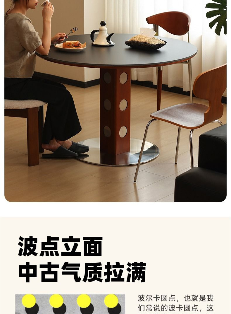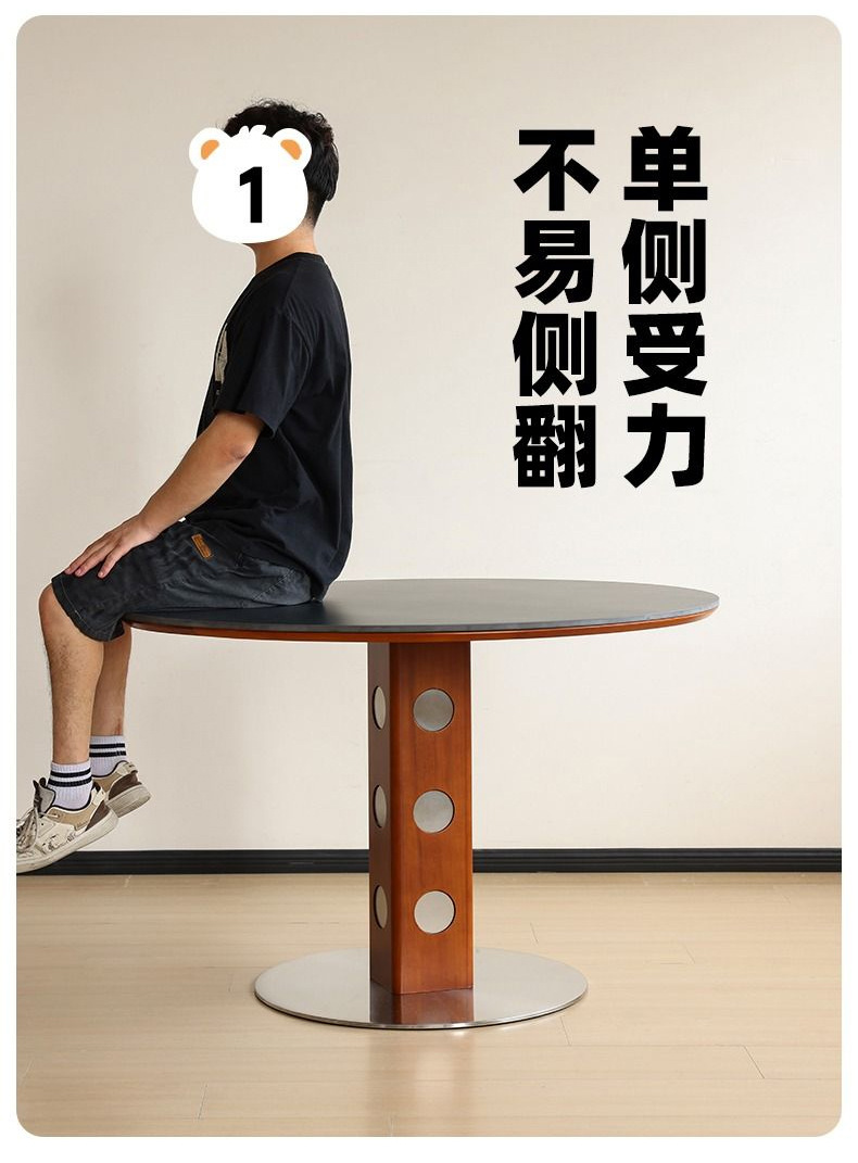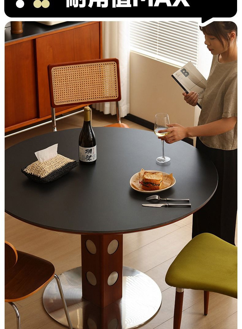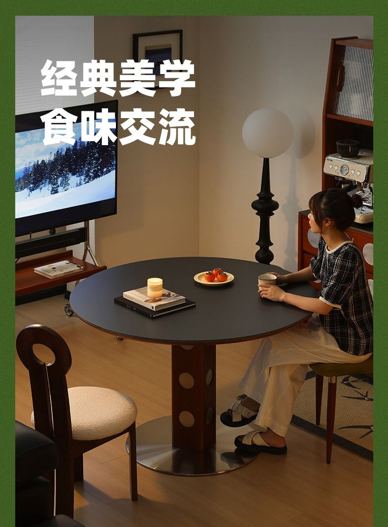 米阿巴中古圆桌复古金属腿圆形餐桌小户型北欧包豪斯实木岩板饭桌