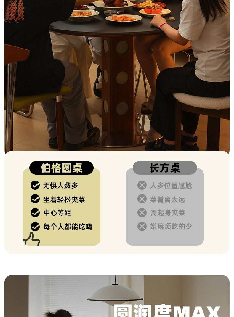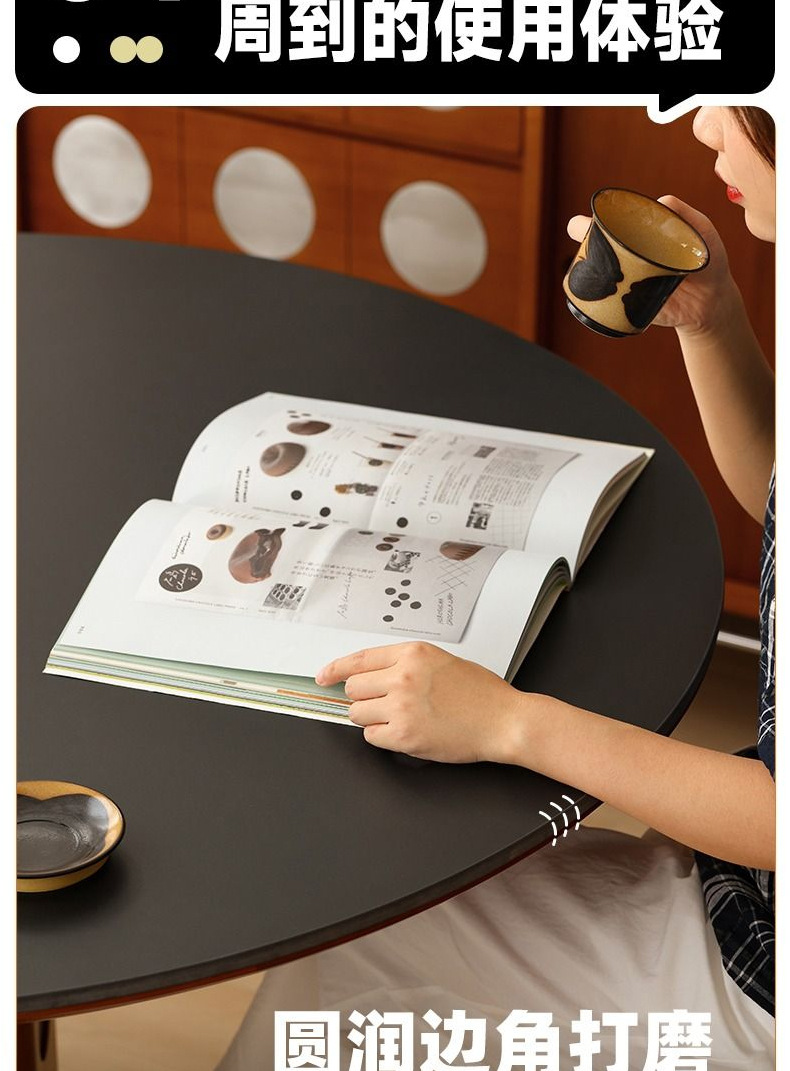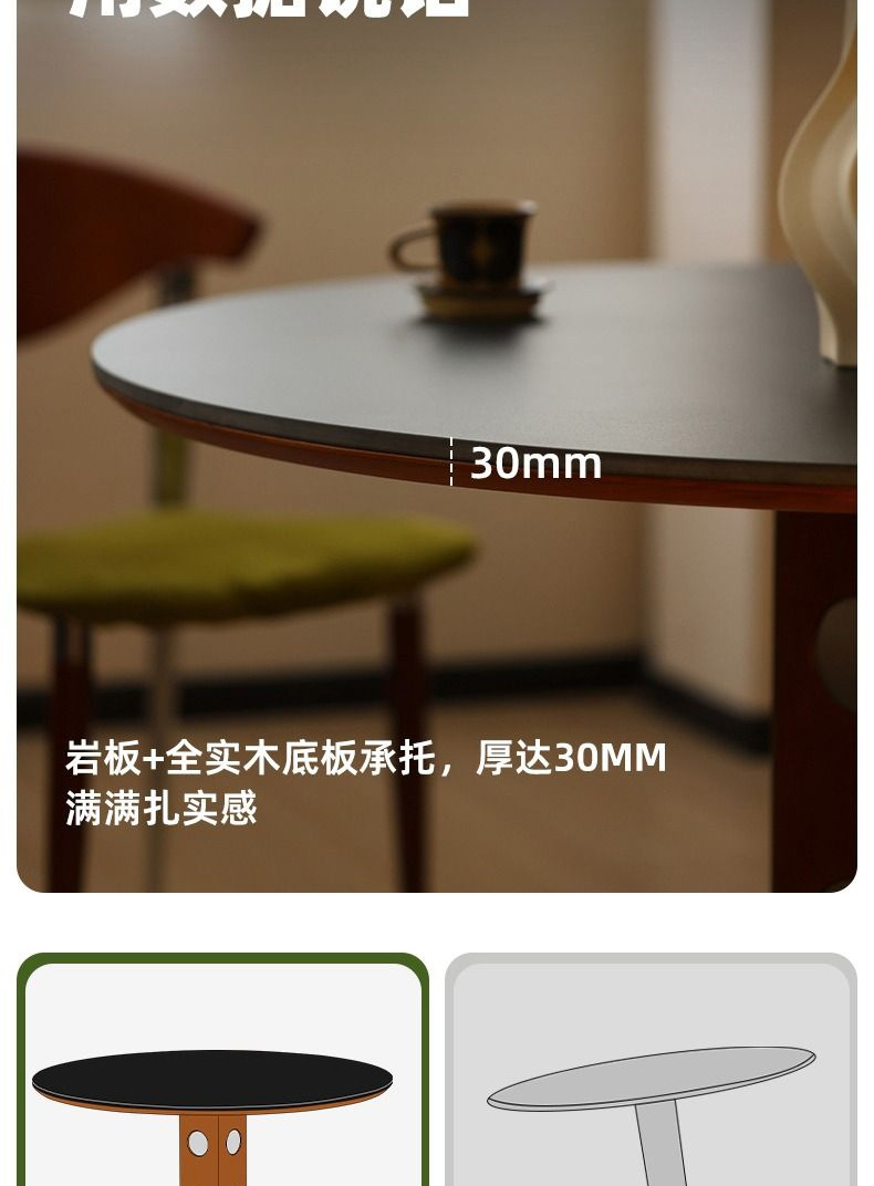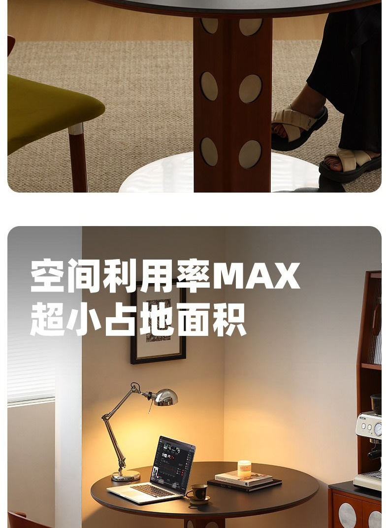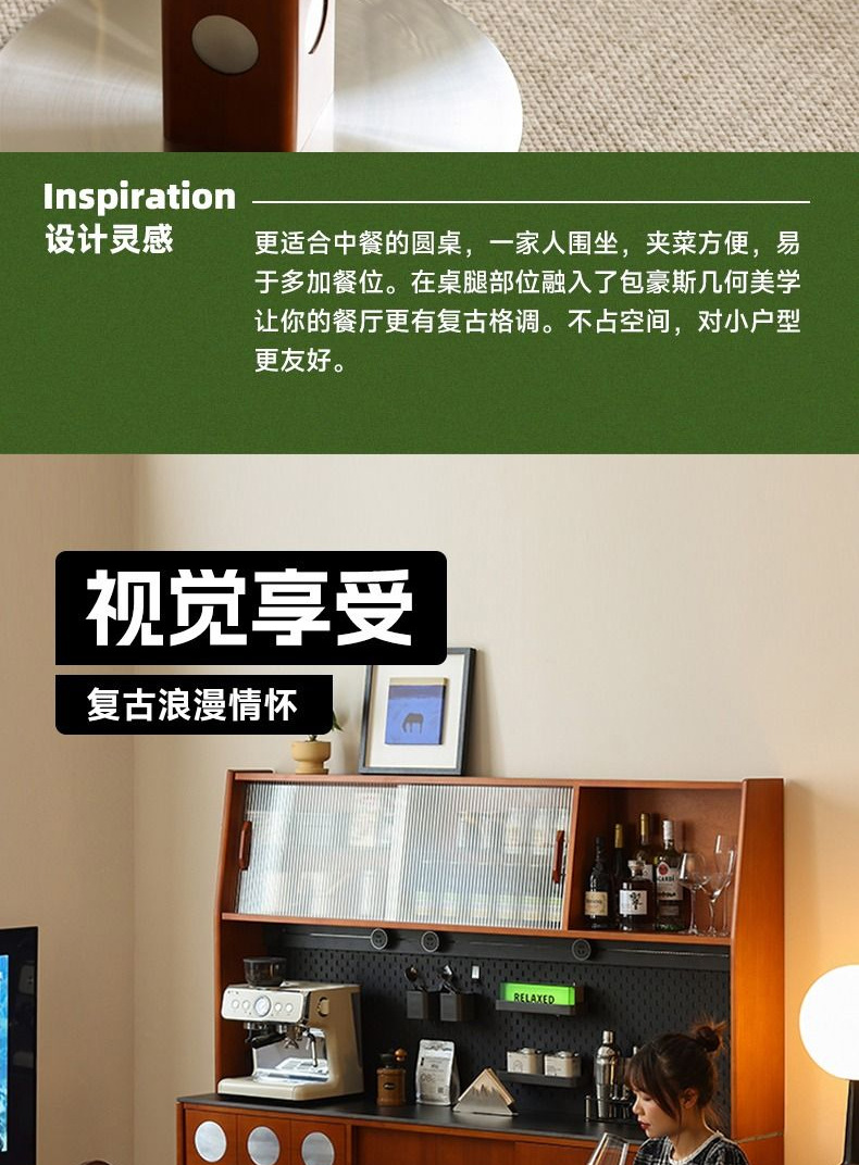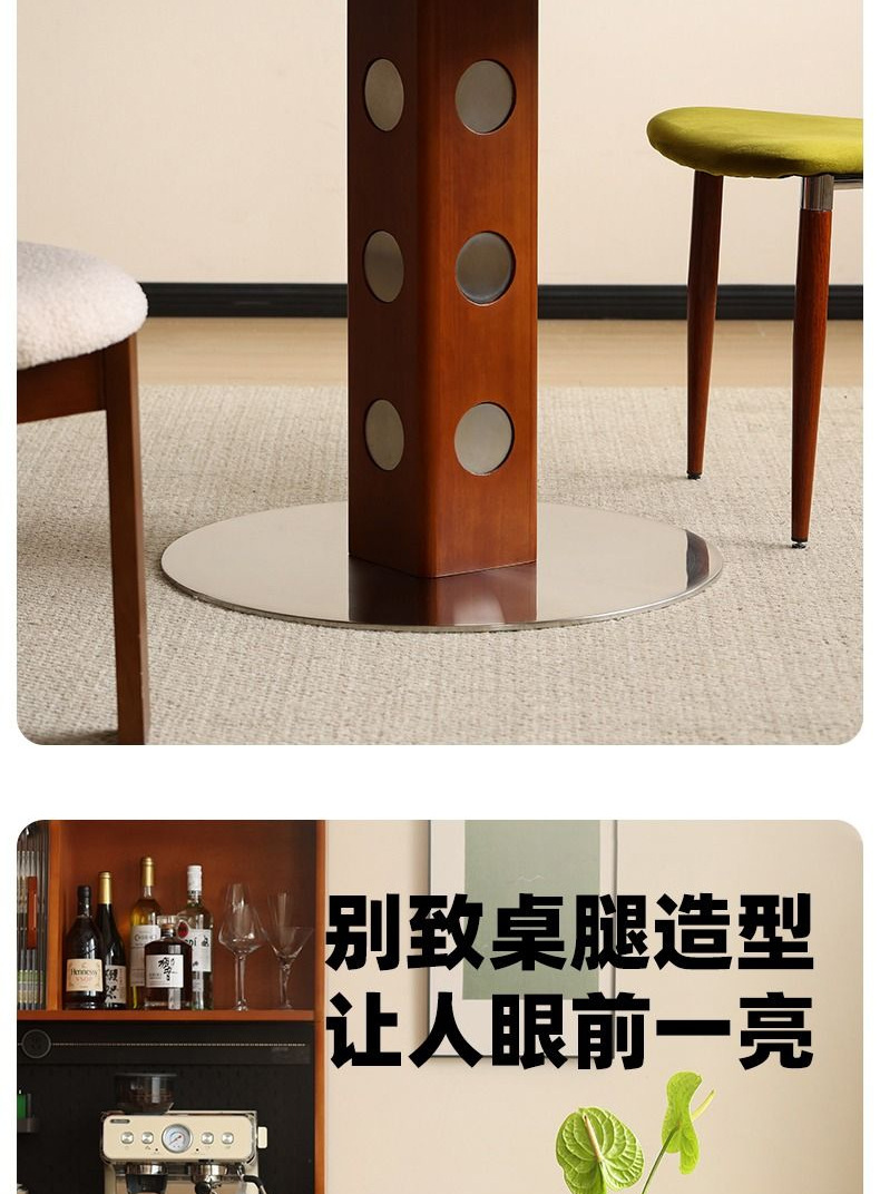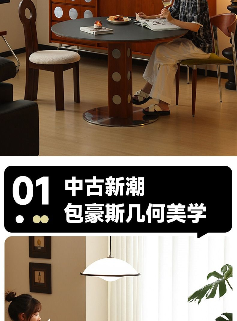 米阿巴中古圆桌复古金属腿圆形餐桌小户型北欧包豪斯实木岩板饭桌