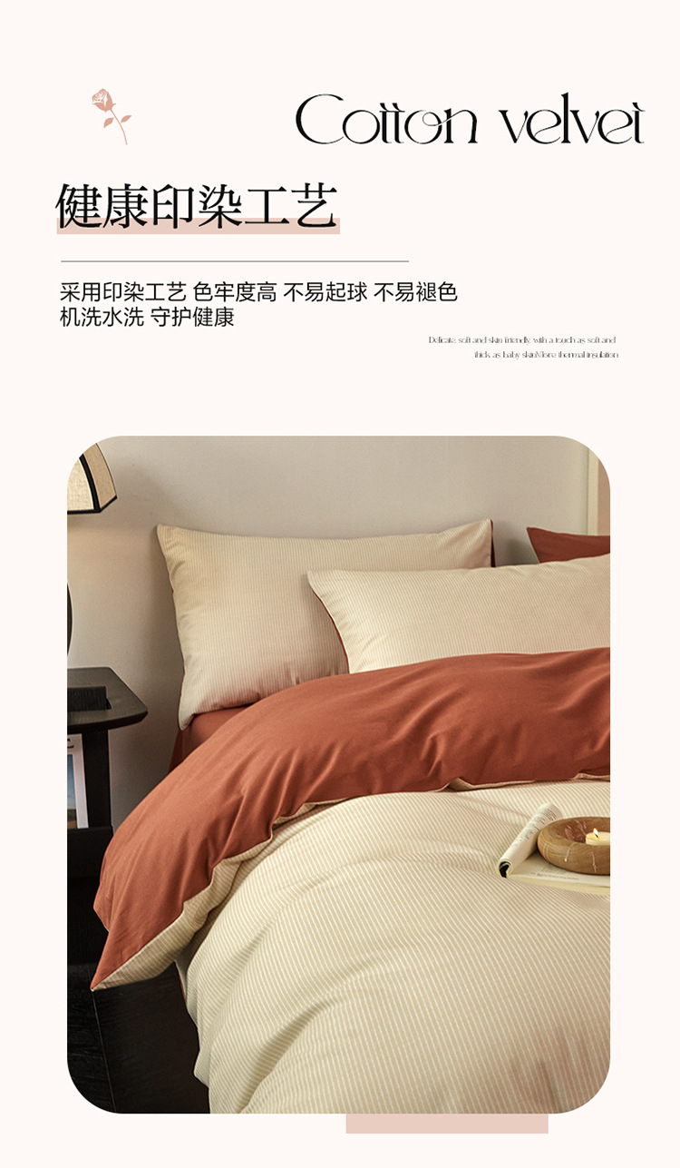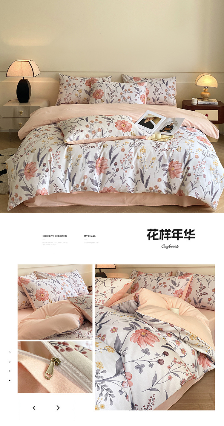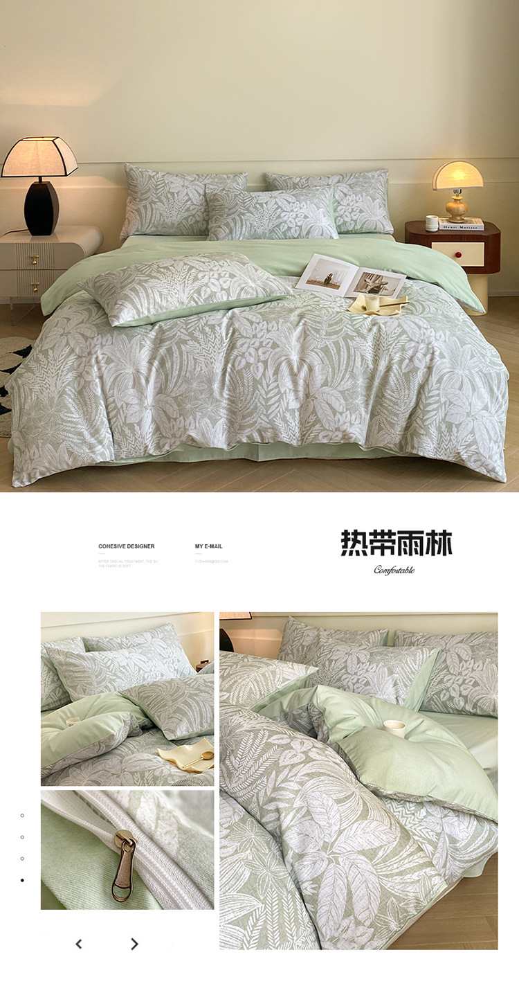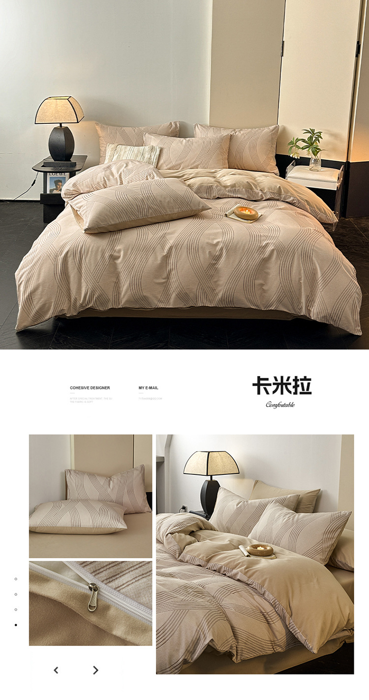 秋冬季北欧简约全棉印花磨毛四件套纯棉加厚保暖被套床上用