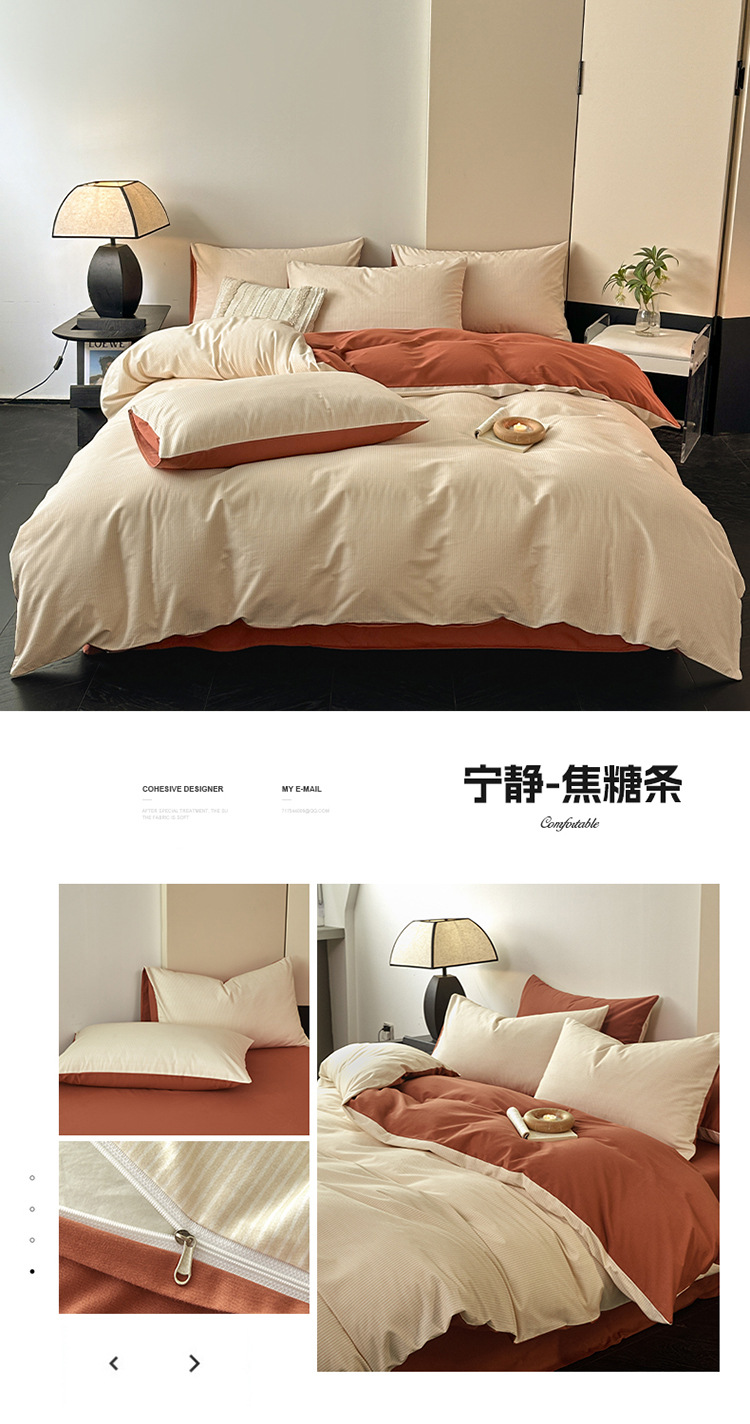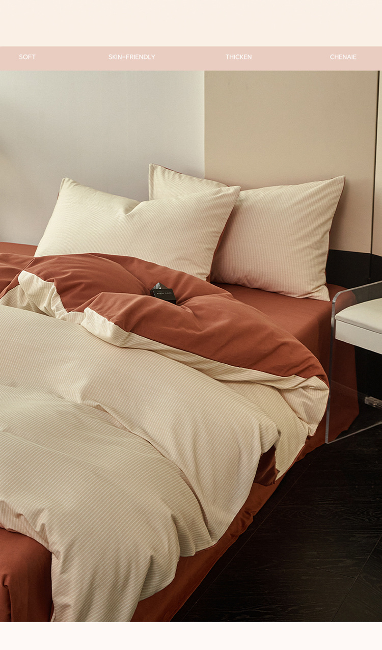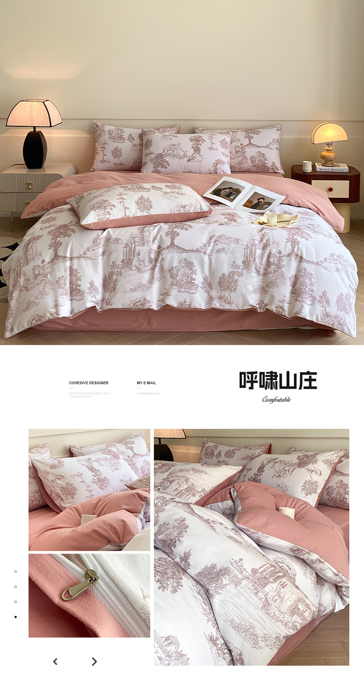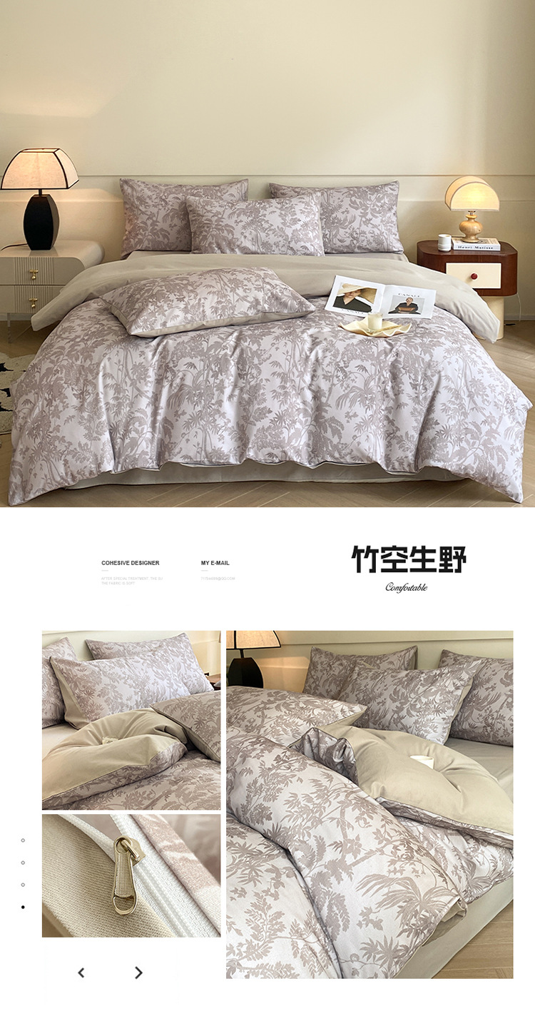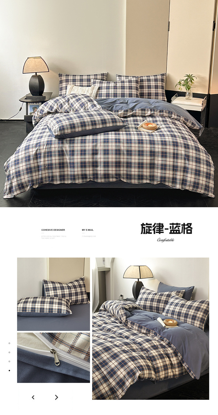 秋冬季北欧简约全棉印花磨毛四件套纯棉加厚保暖被套床上用