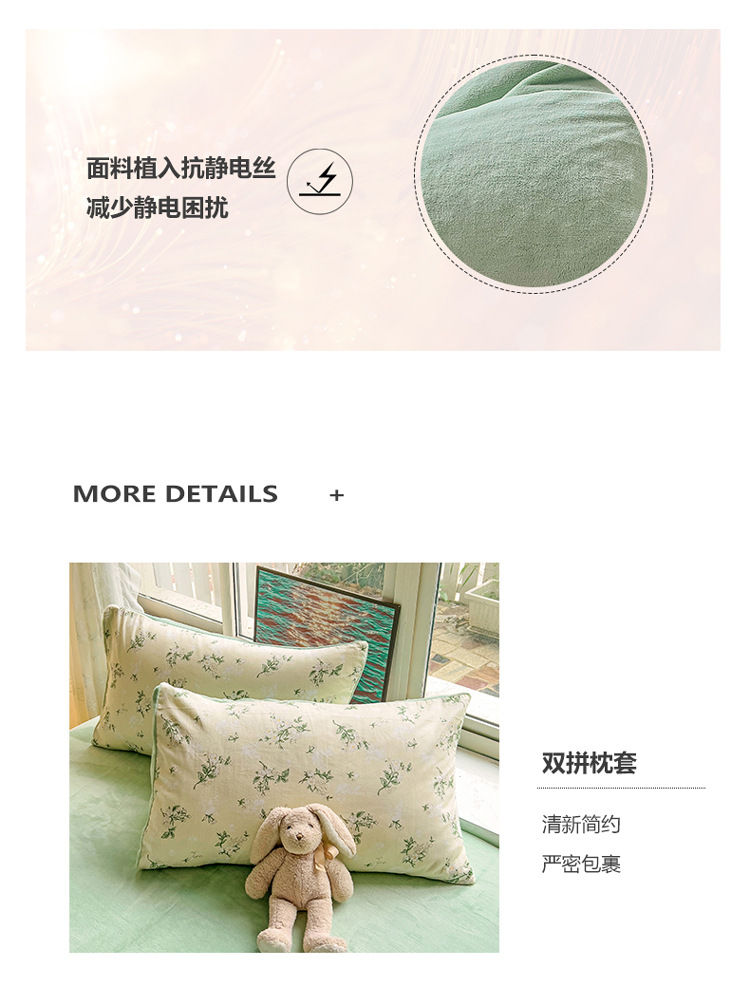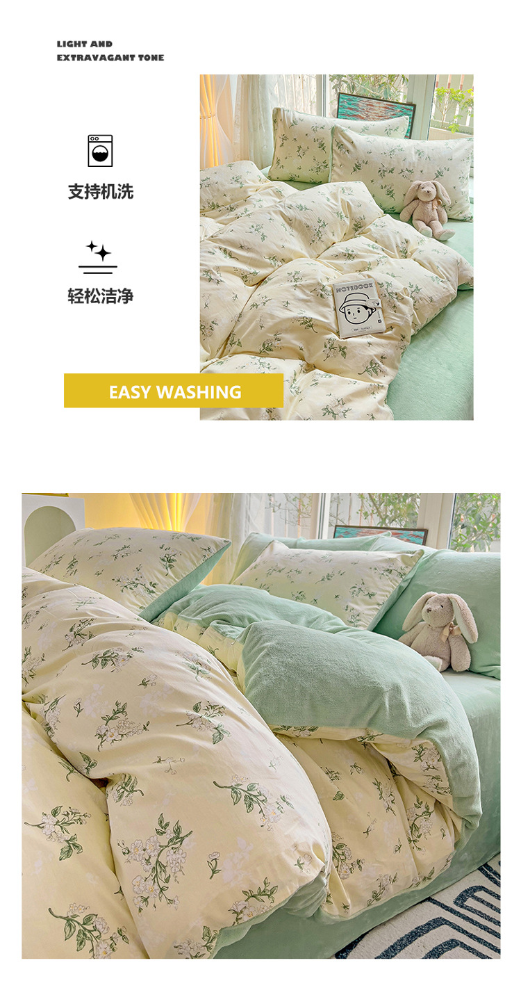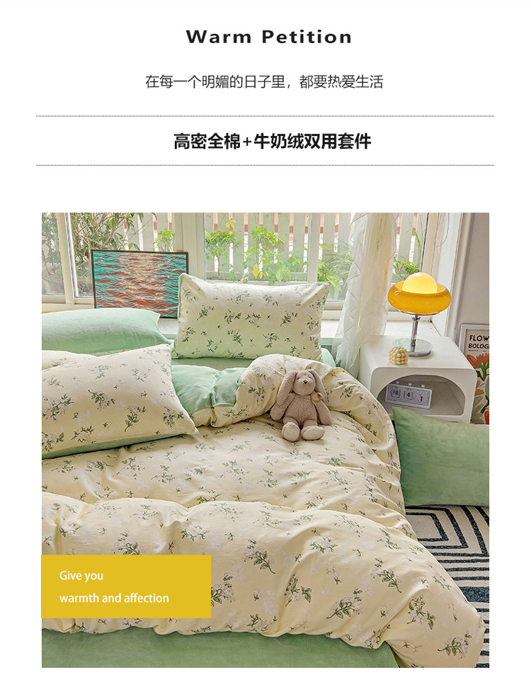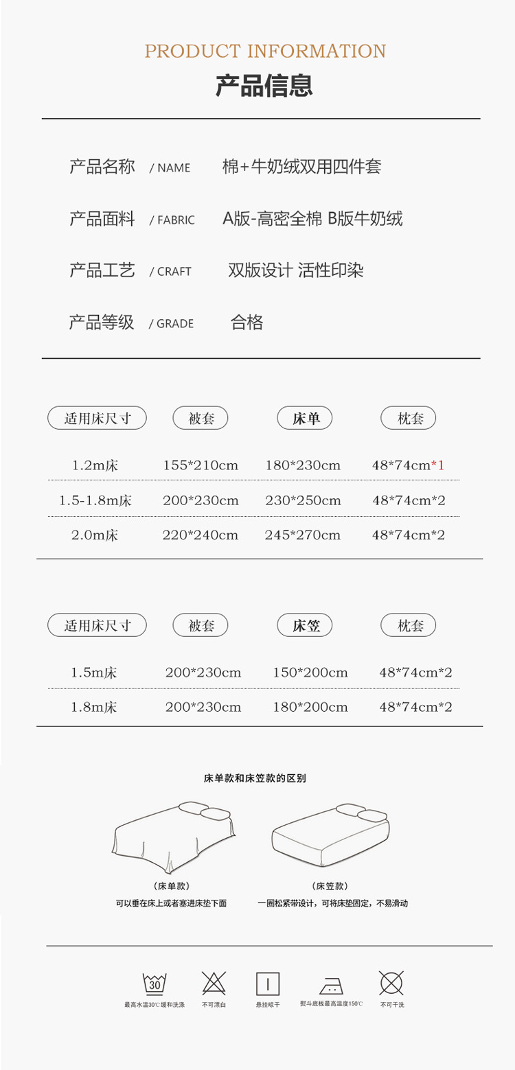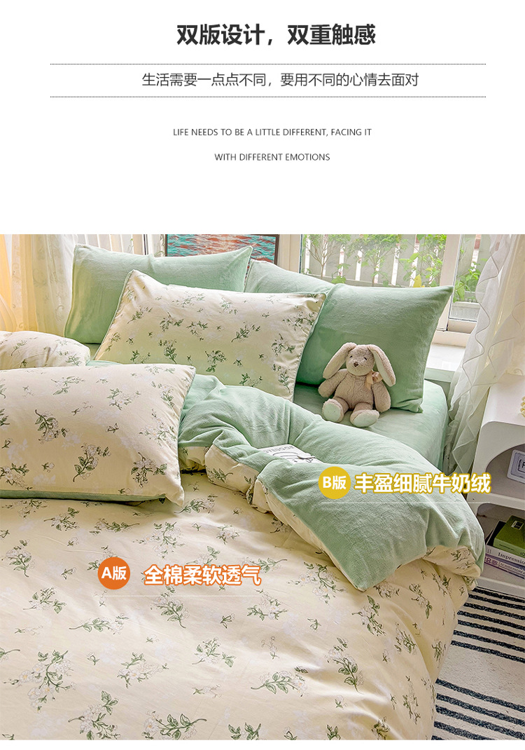 A面全棉B面牛奶绒四件套冬季保暖棉加绒珊瑚绒法兰绒套件床上用品