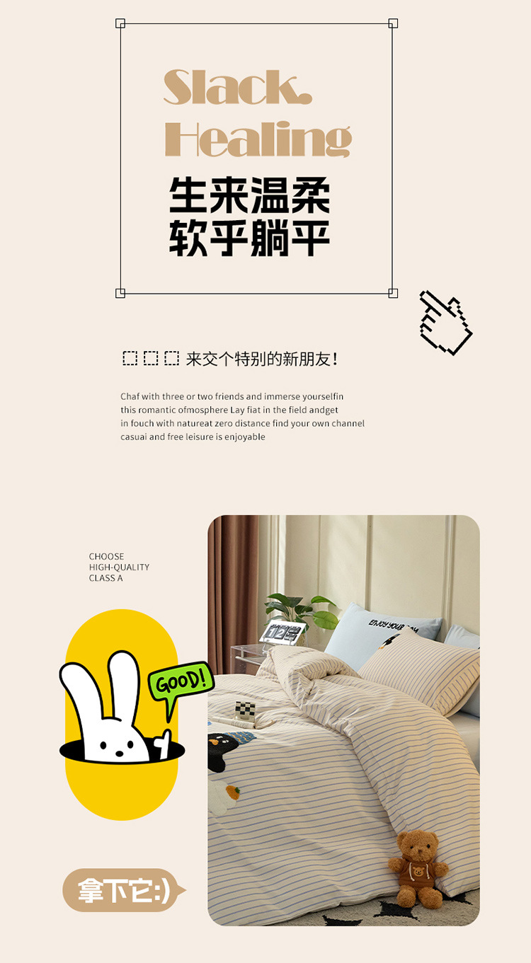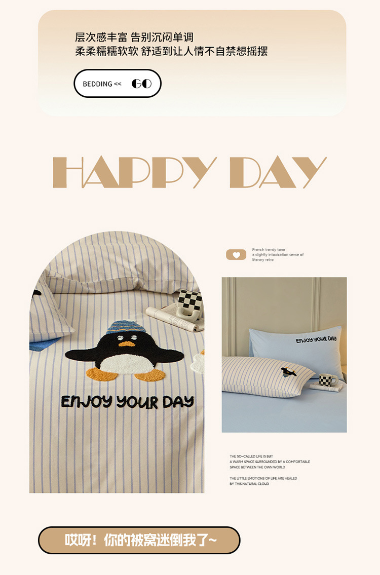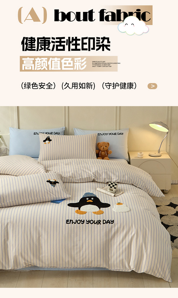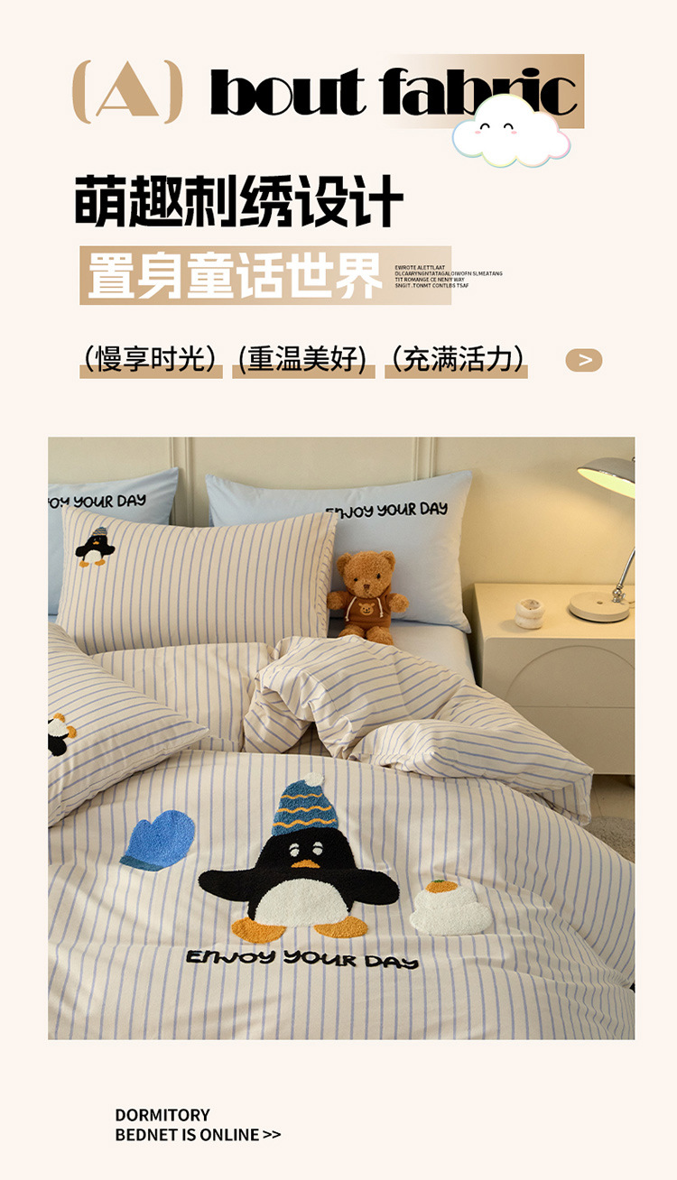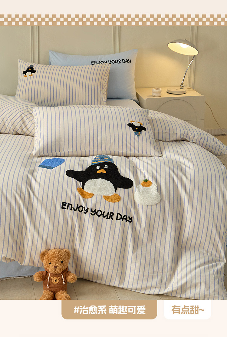 秋冬加厚全棉磨毛高级感纯棉四件套可爱卡通萌趣床单床笠款床包组