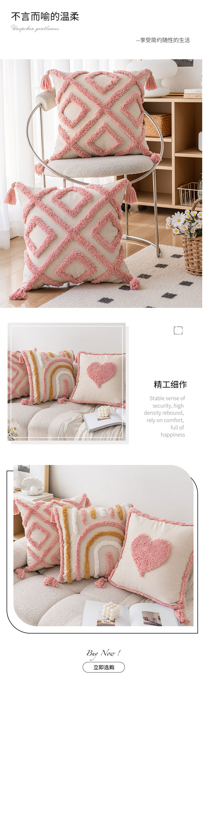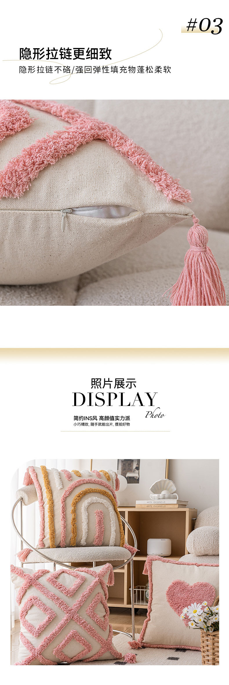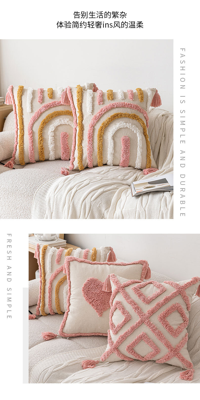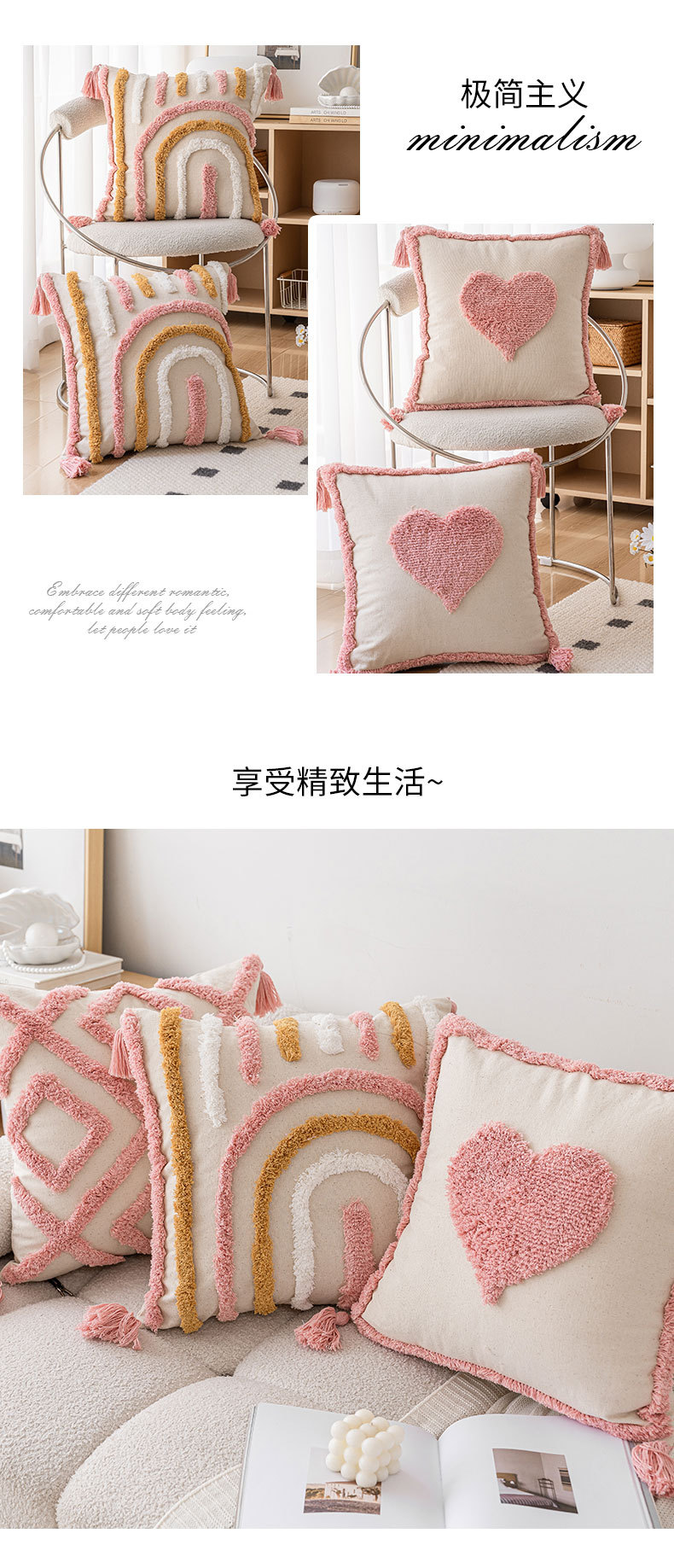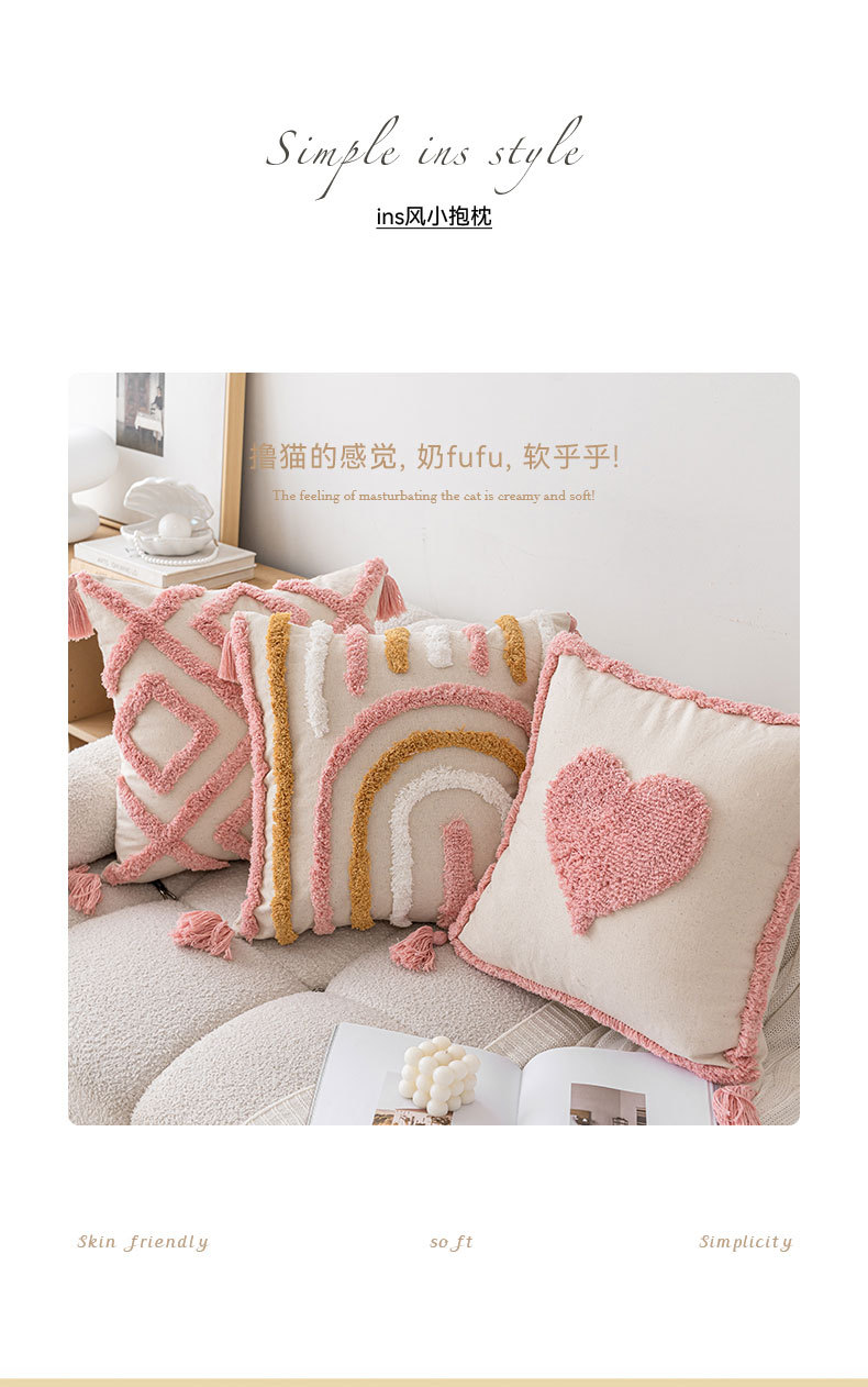 ins风粉色簇绒沙发抱枕新款家用小清新爱心款可拆卸靠枕枕套组合
