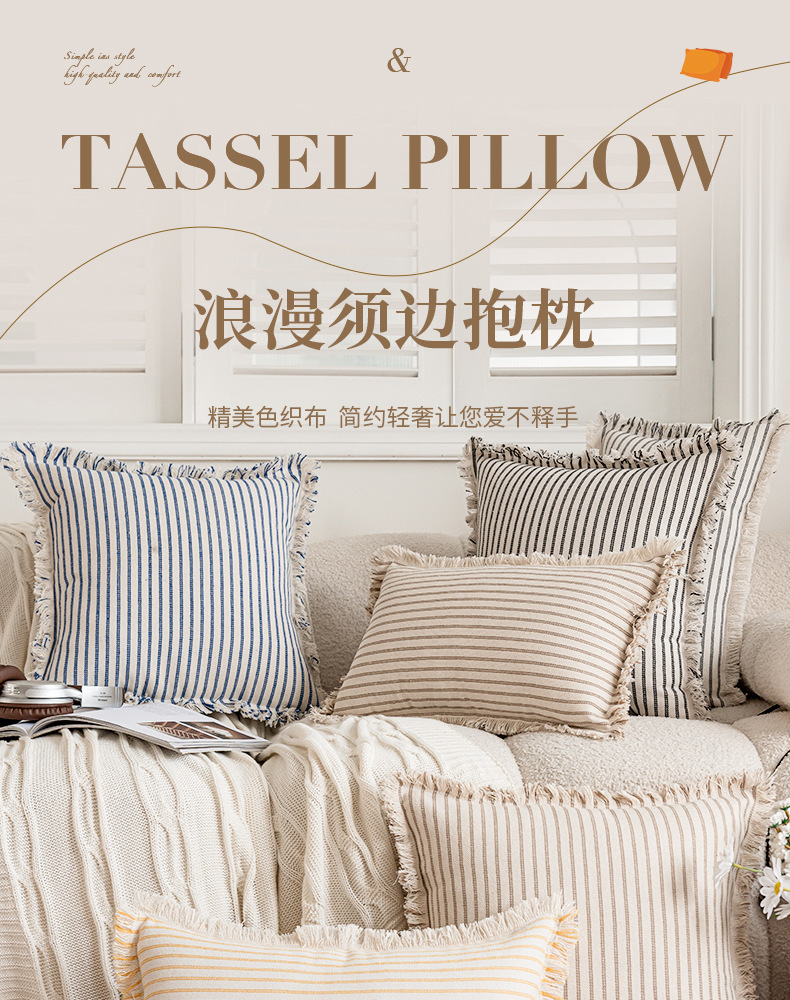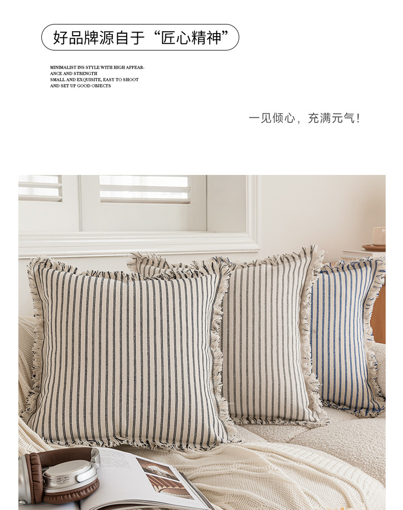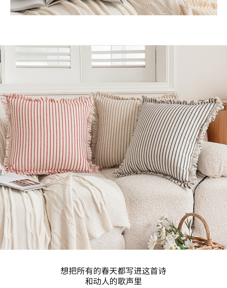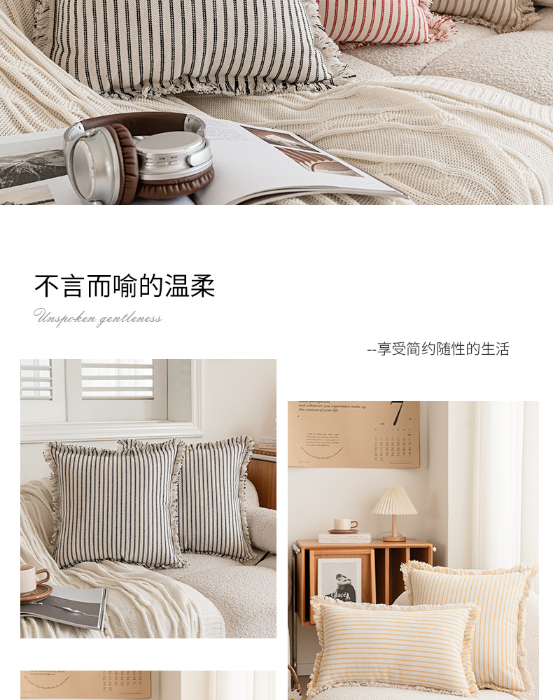 ins风条纹流苏抱枕北欧简约放行沙发靠枕居家办公室小清新靠垫套