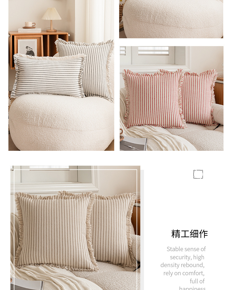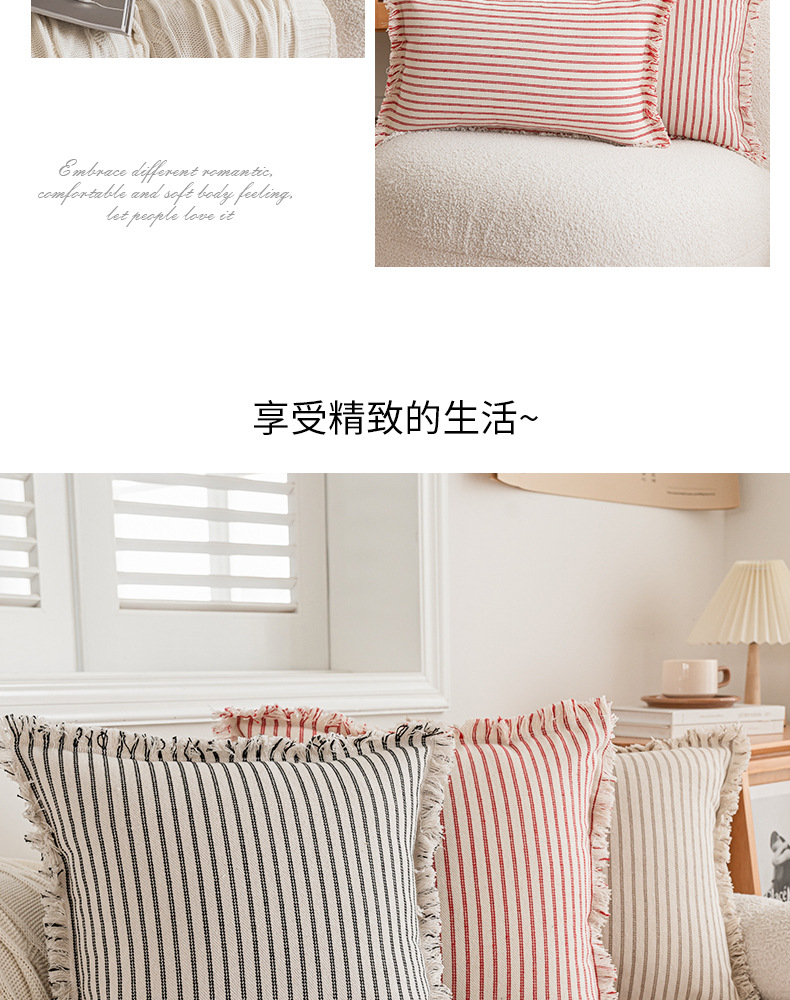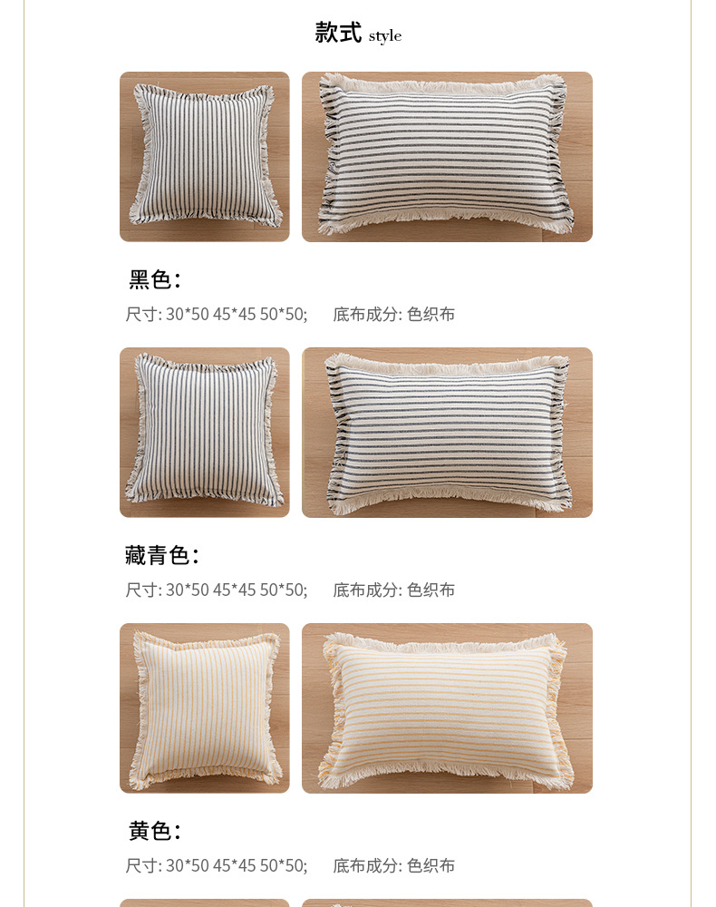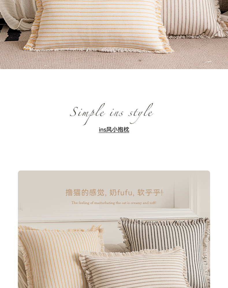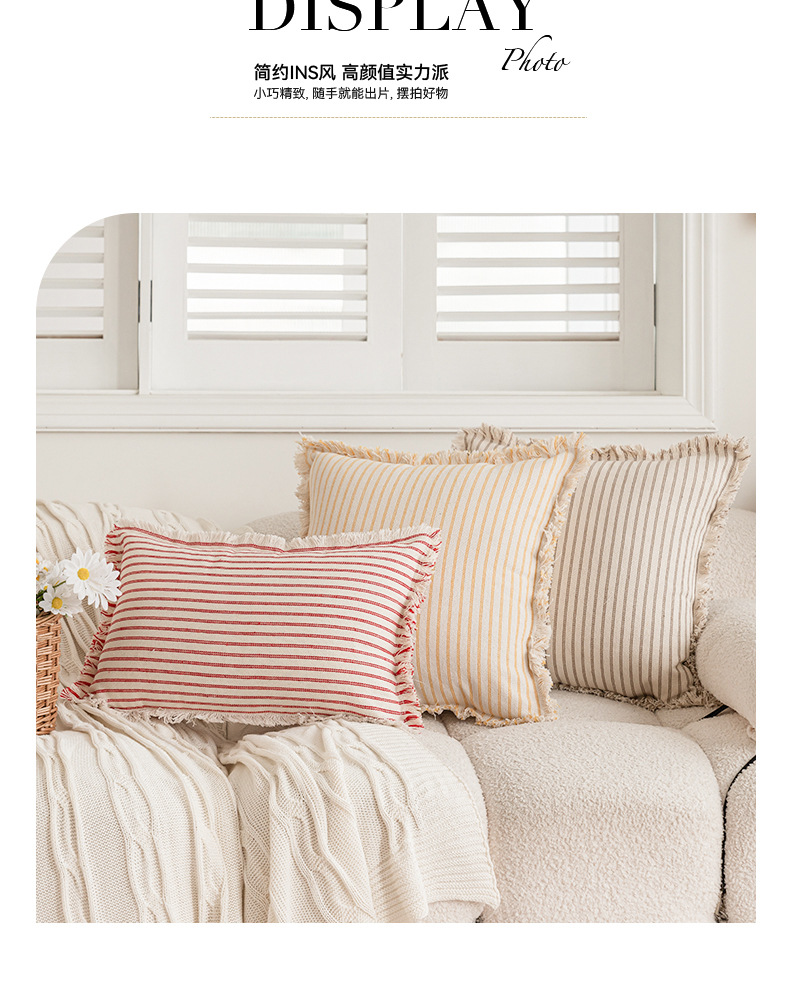 ins风条纹流苏抱枕北欧简约放行沙发靠枕居家办公室小清新靠垫套