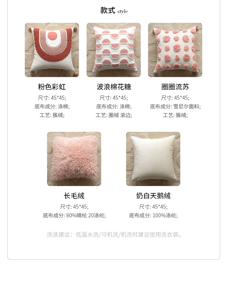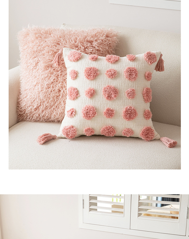 严选流苏抱枕客厅沙发现代粉色波点靠枕方形靠垫靠罩个性拆卸枕套
