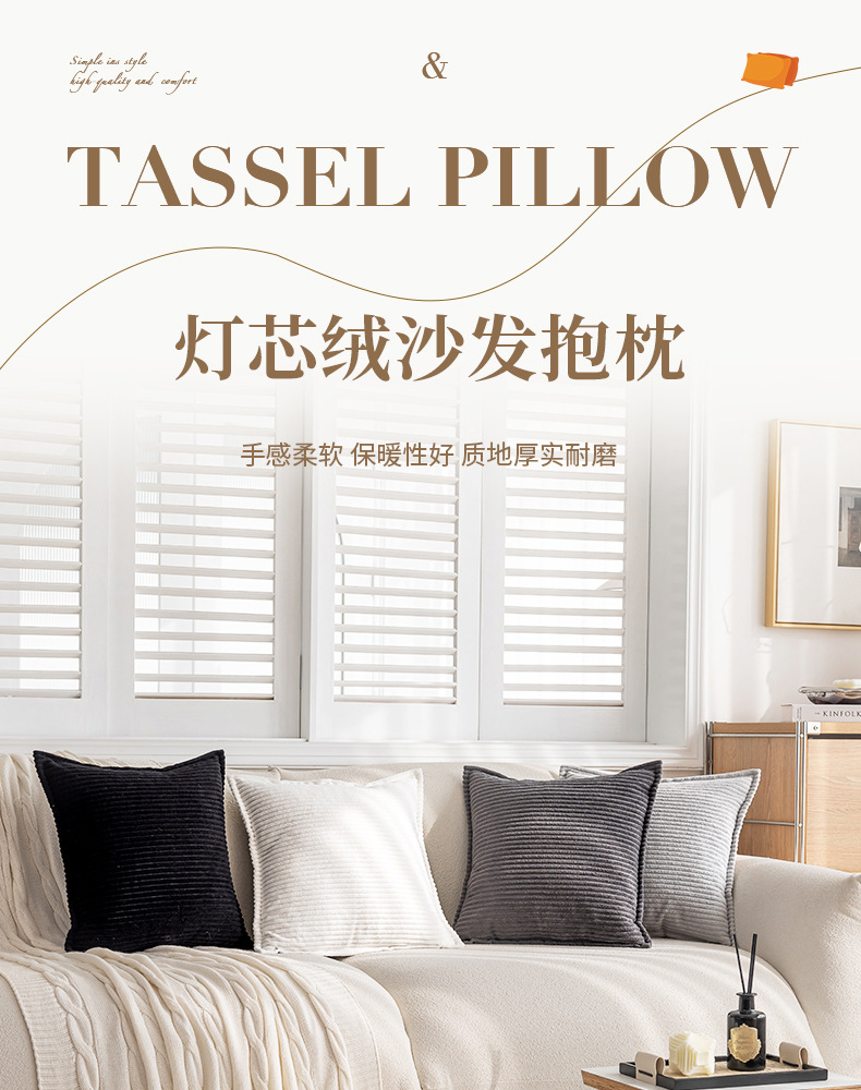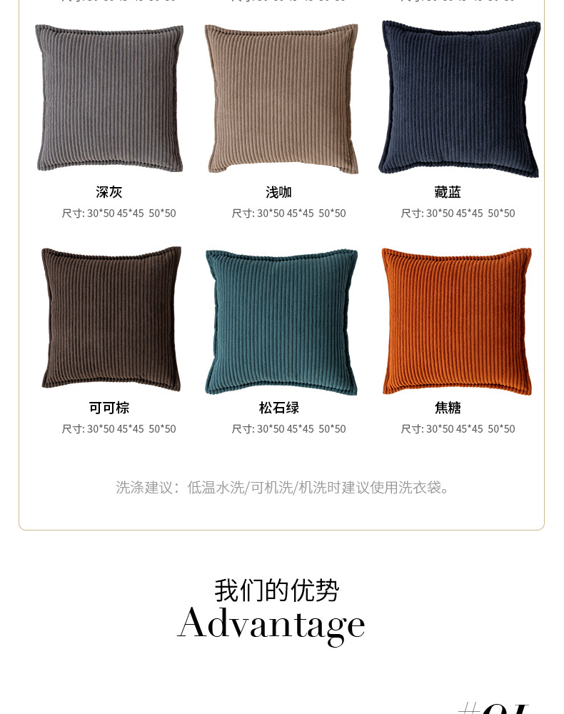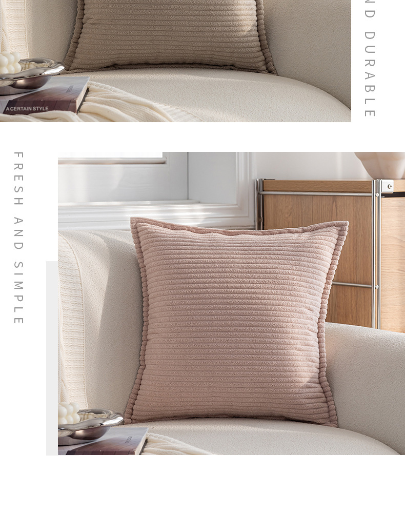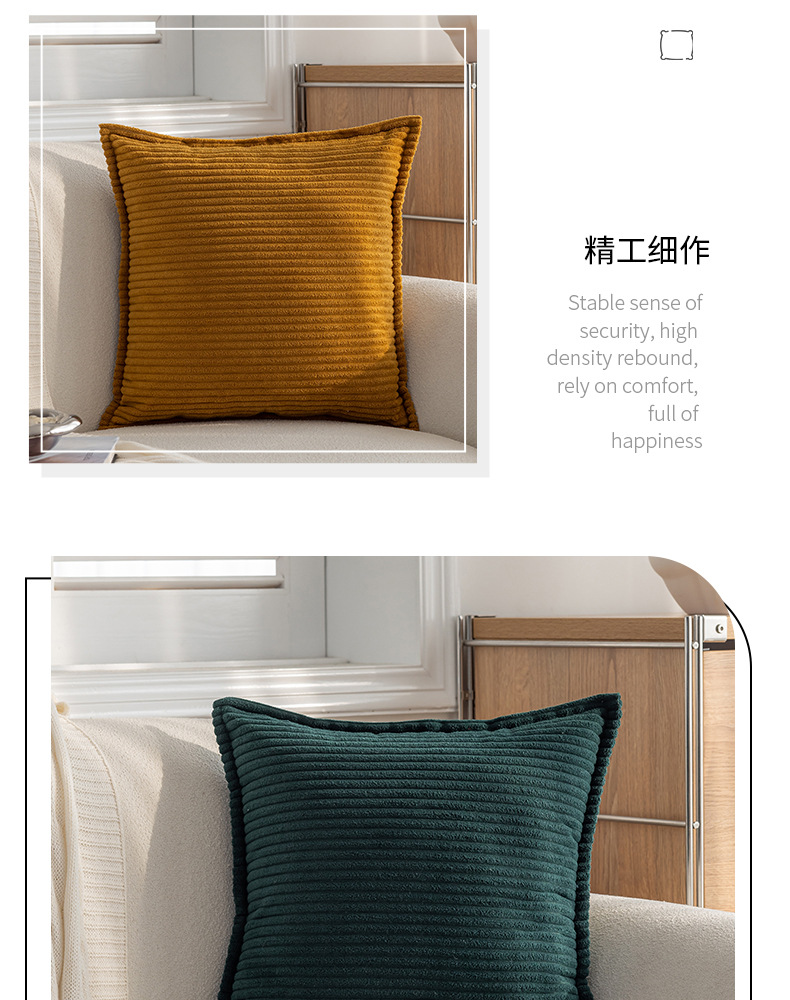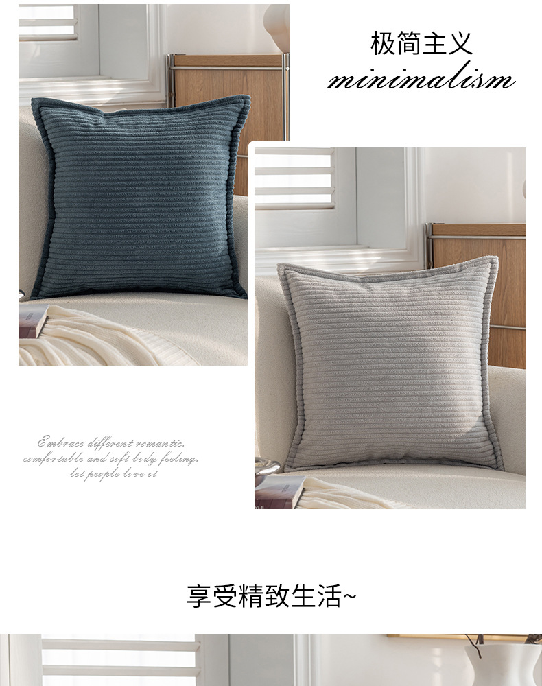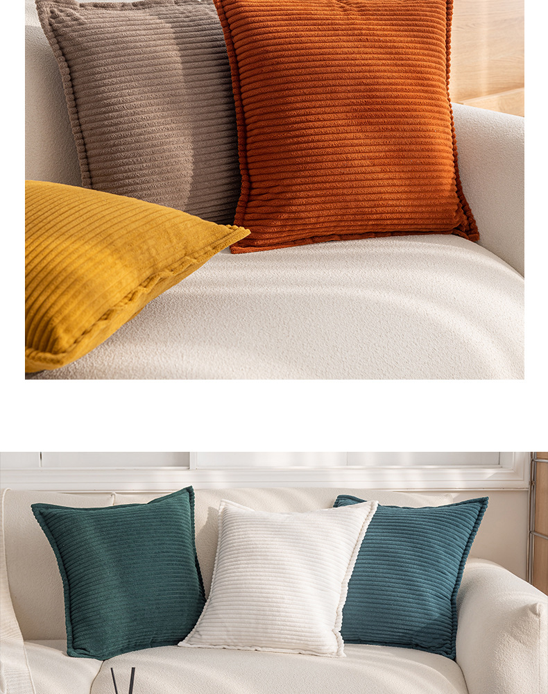 严选抱枕靠枕纯色沙发靠垫办公室腰枕午睡靠枕灯芯绒条纹抱枕套