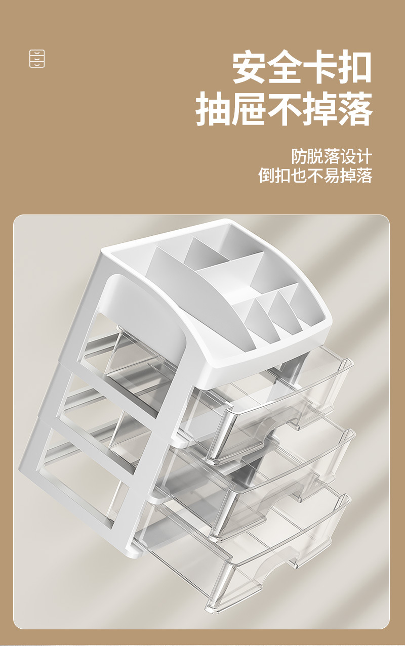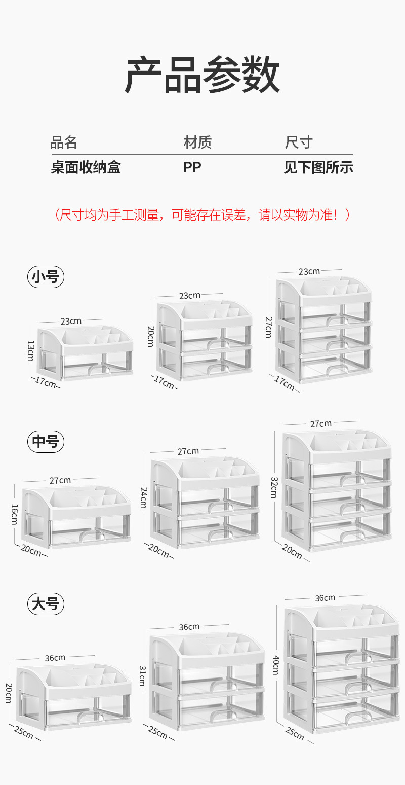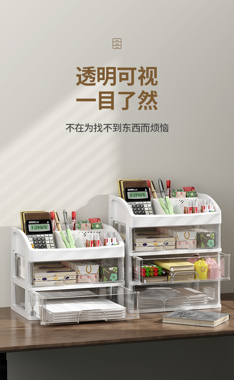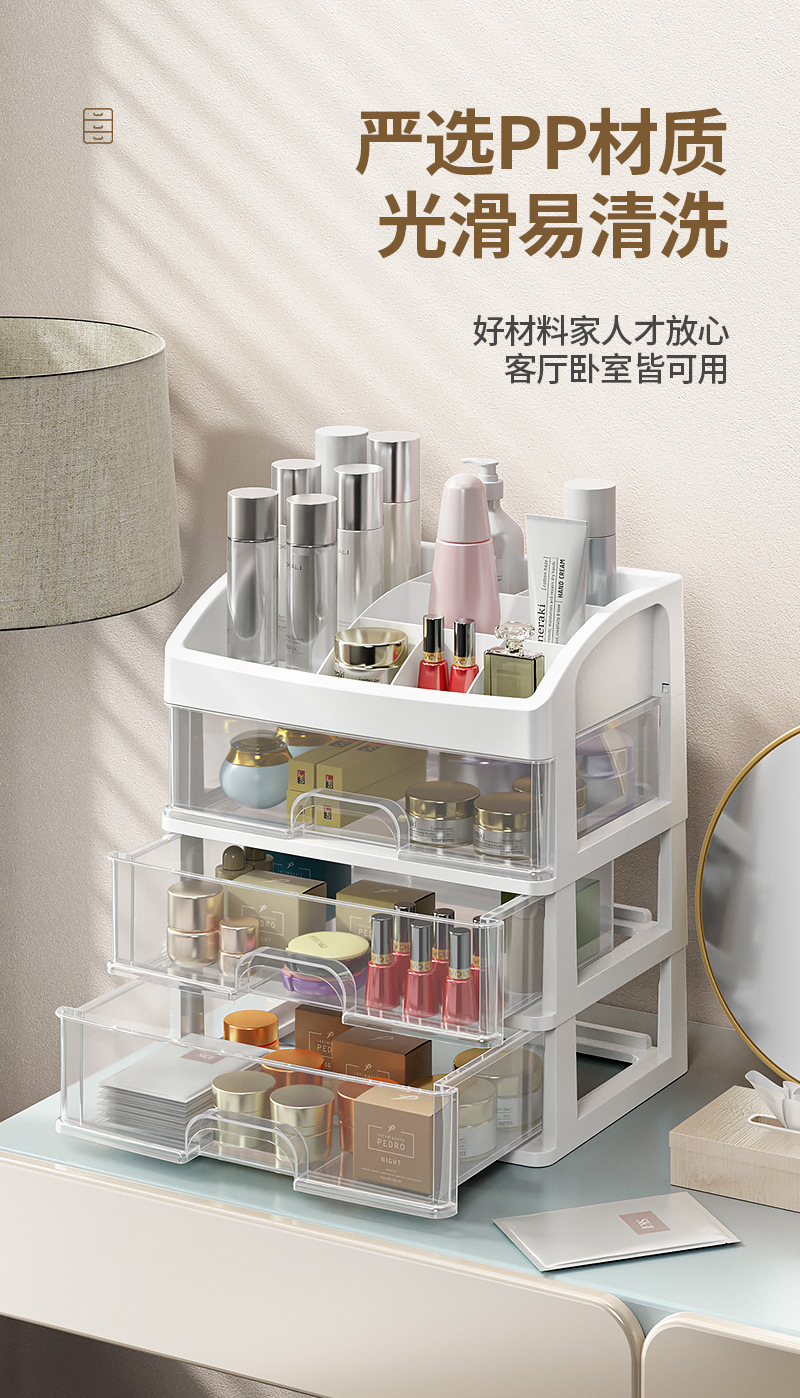 桌面收纳盒抽屉式大容量杂物透明塑料置物盒防尘口红化妆品储物盒