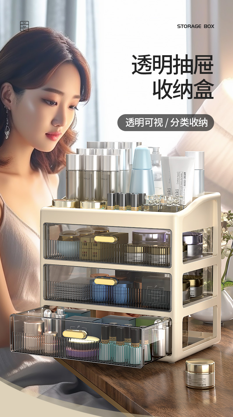 化妆品架子多功能桌面抽屉式收纳盒家用防尘大容量装化妆盒子批发