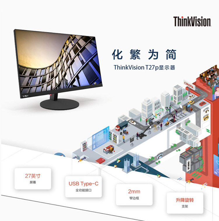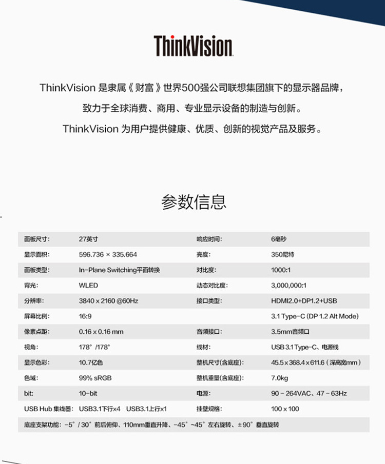 联想ThinkVision 28英寸4K UHD IPS屏 原生滤蓝光 S28u-10显示器
