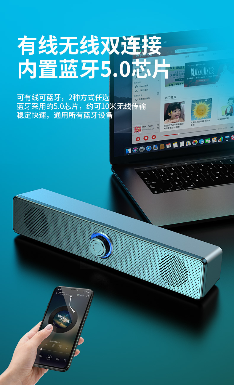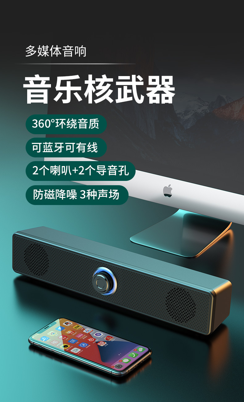 新款私模电脑电视桌面长条多媒体插卡音响声霸有线蓝牙重低音音箱