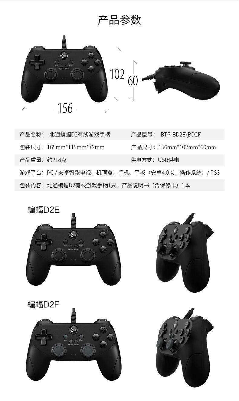 北通蝙蝠有线pc电脑ps3智能电视双人steam游戏手柄NBA2k18