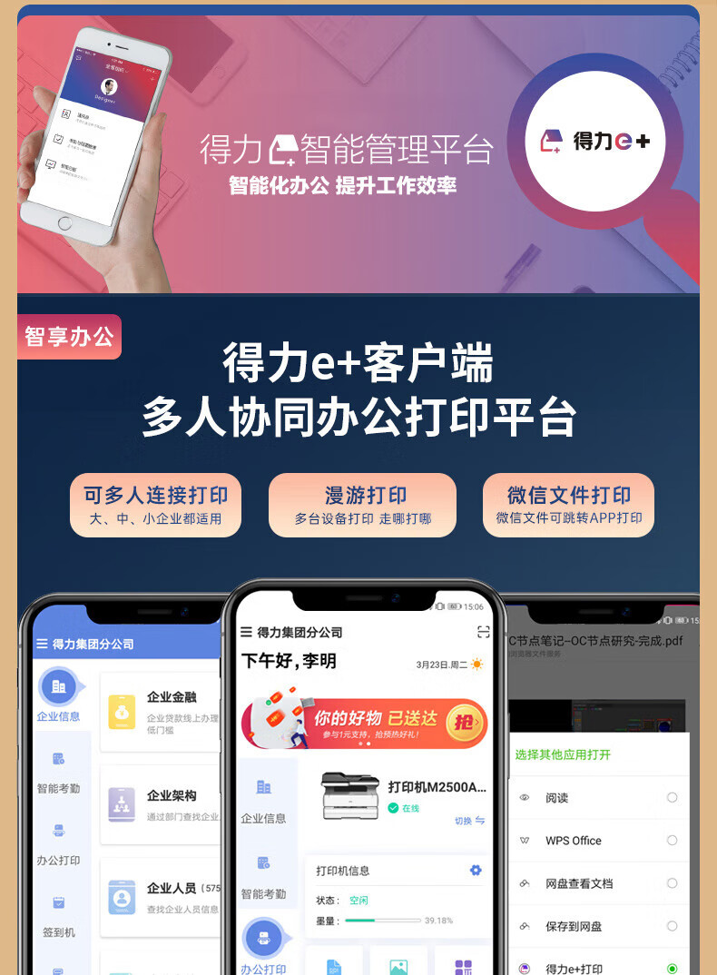 得力M2500DW激光打印机多功能一体机双面手机无线云打印办公家用