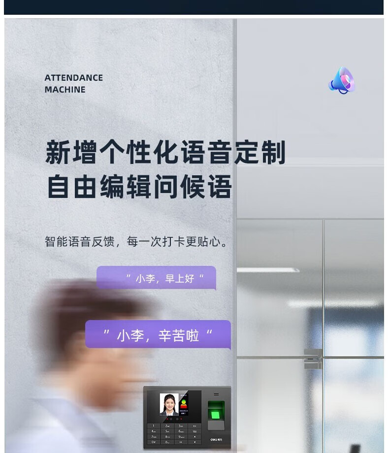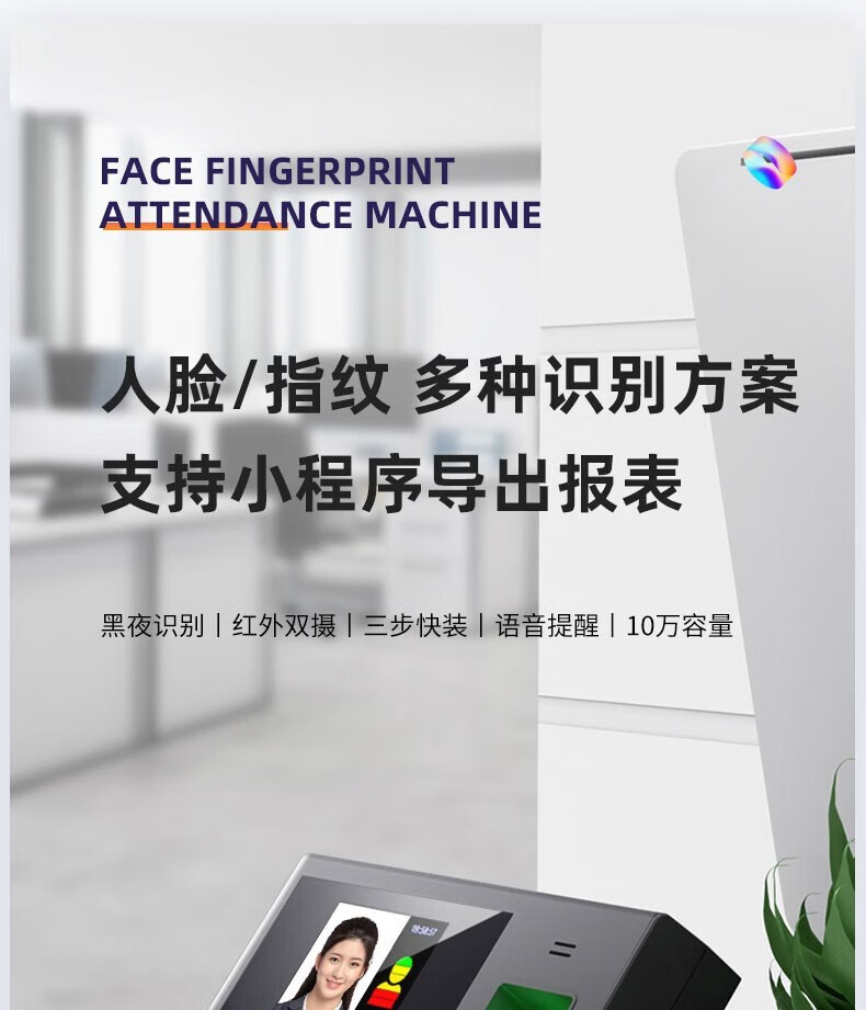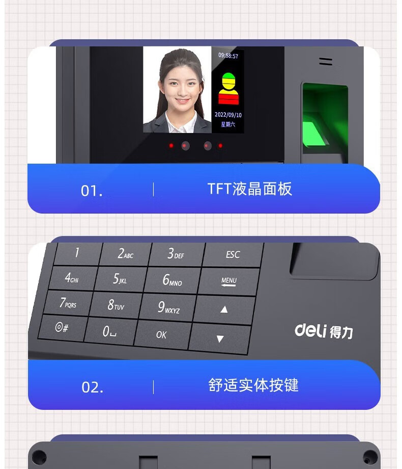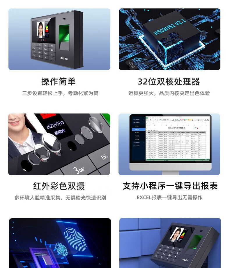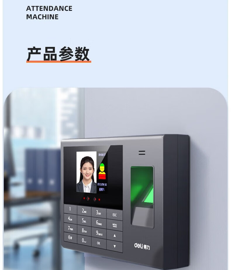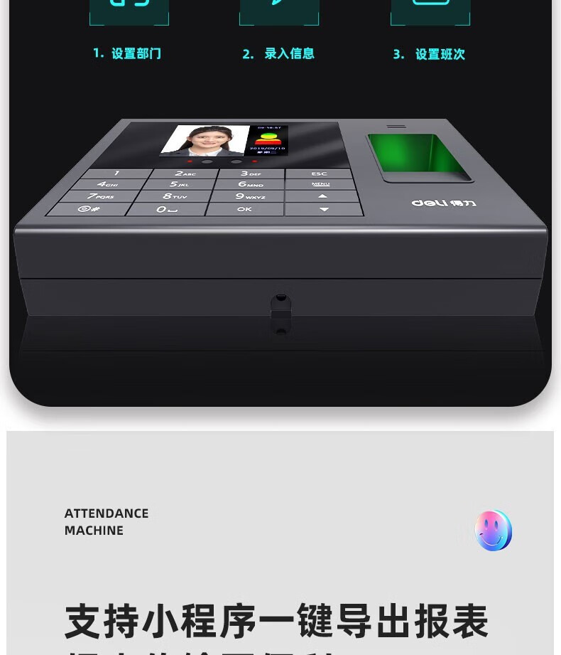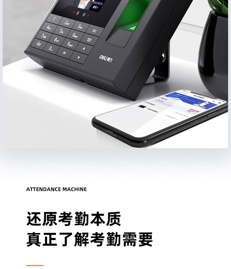 得力指纹考勤机蓝牙款小程序导出报表U盘下载面部识别人脸打卡机