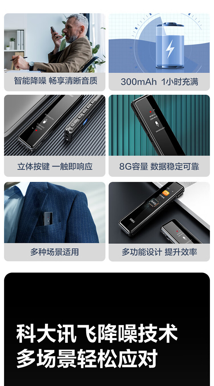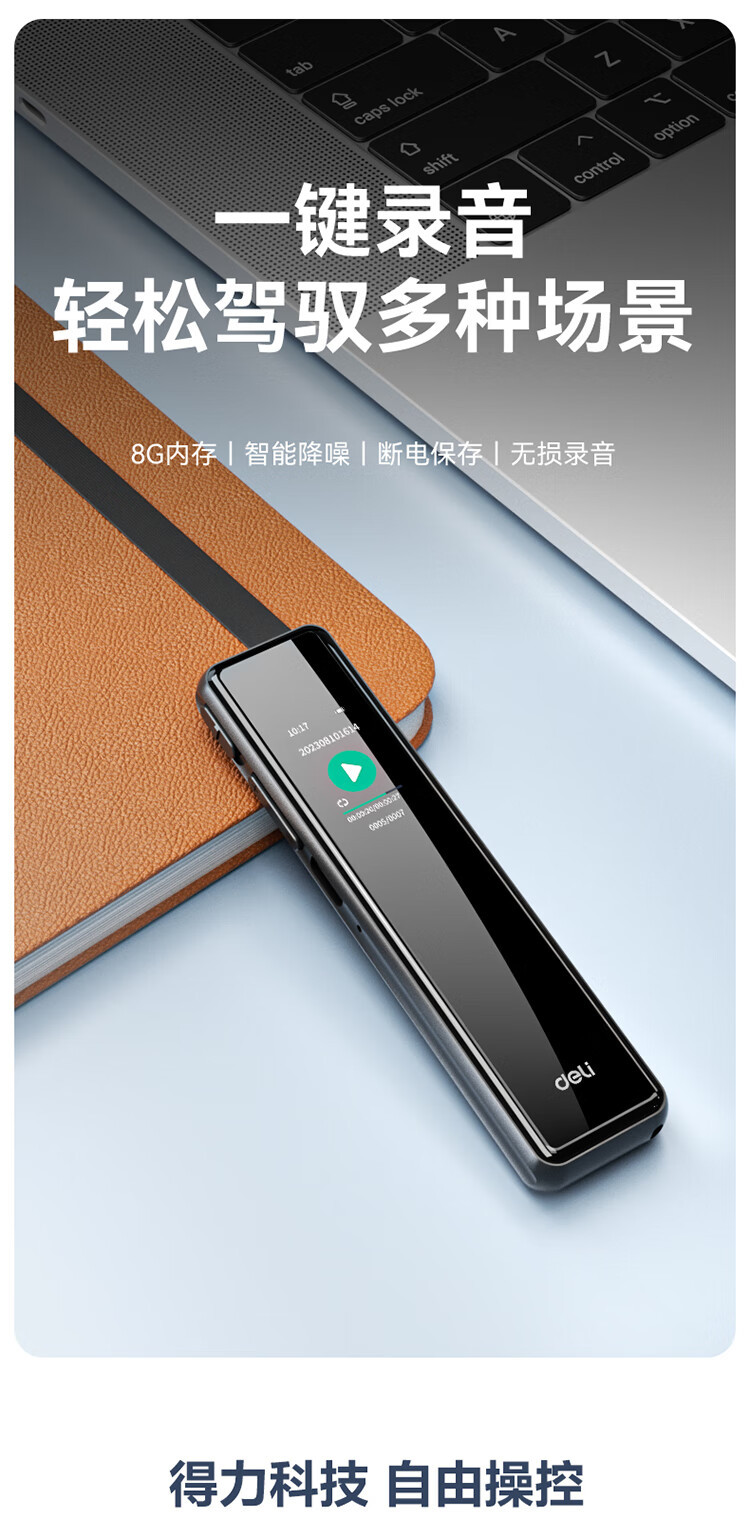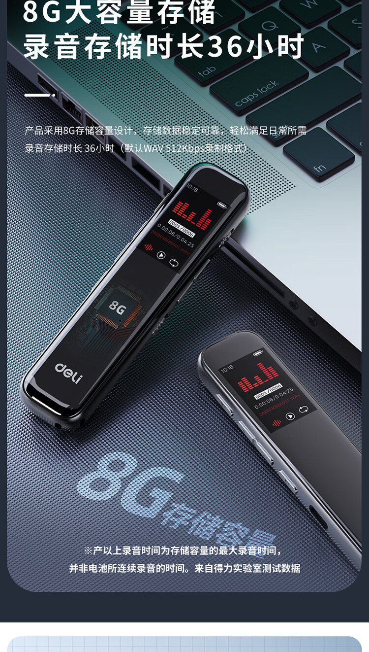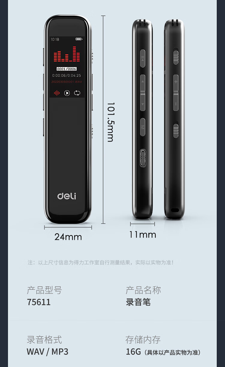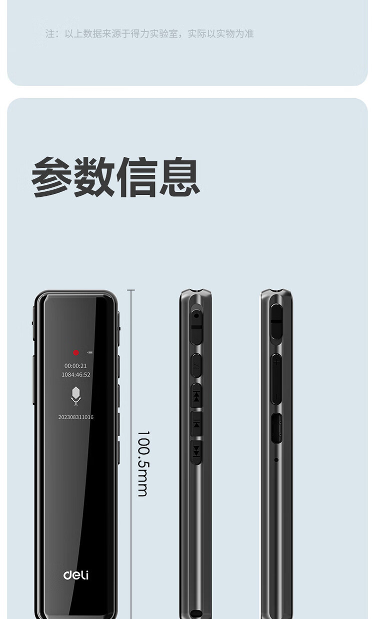 得力MP301专业录音笔智能降噪学生上课随身办公会议便携式 录音笔