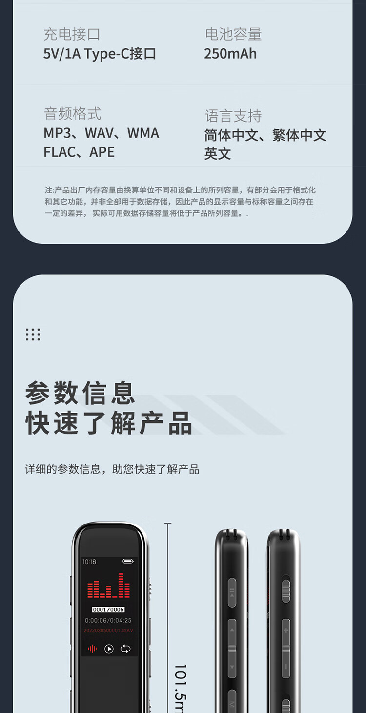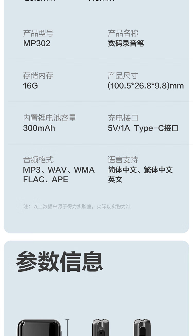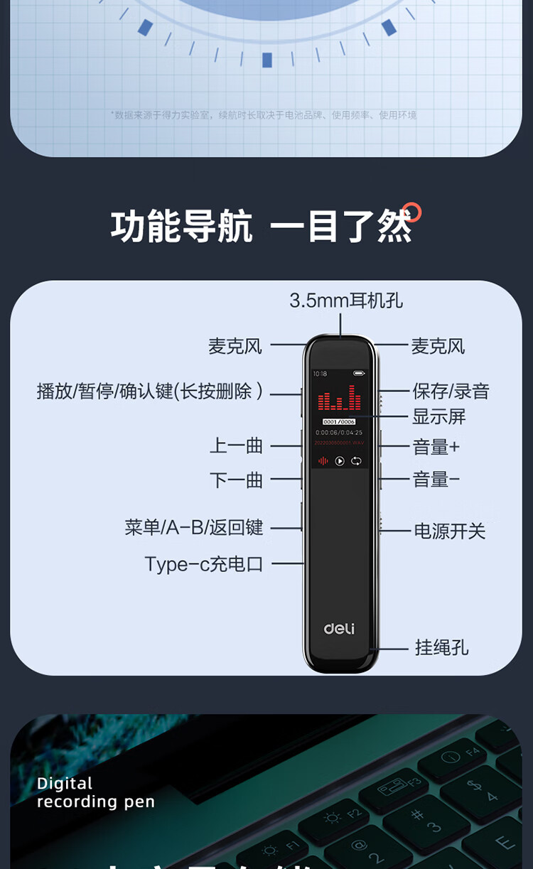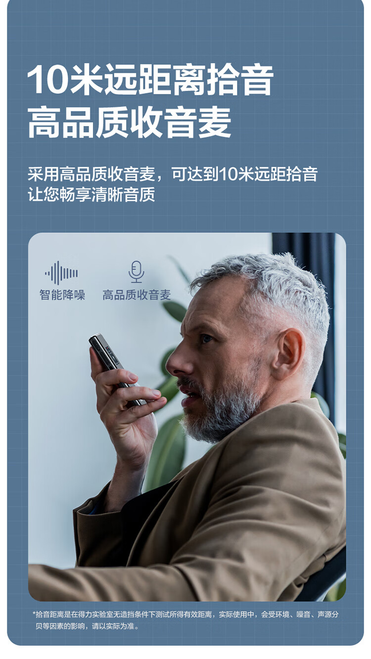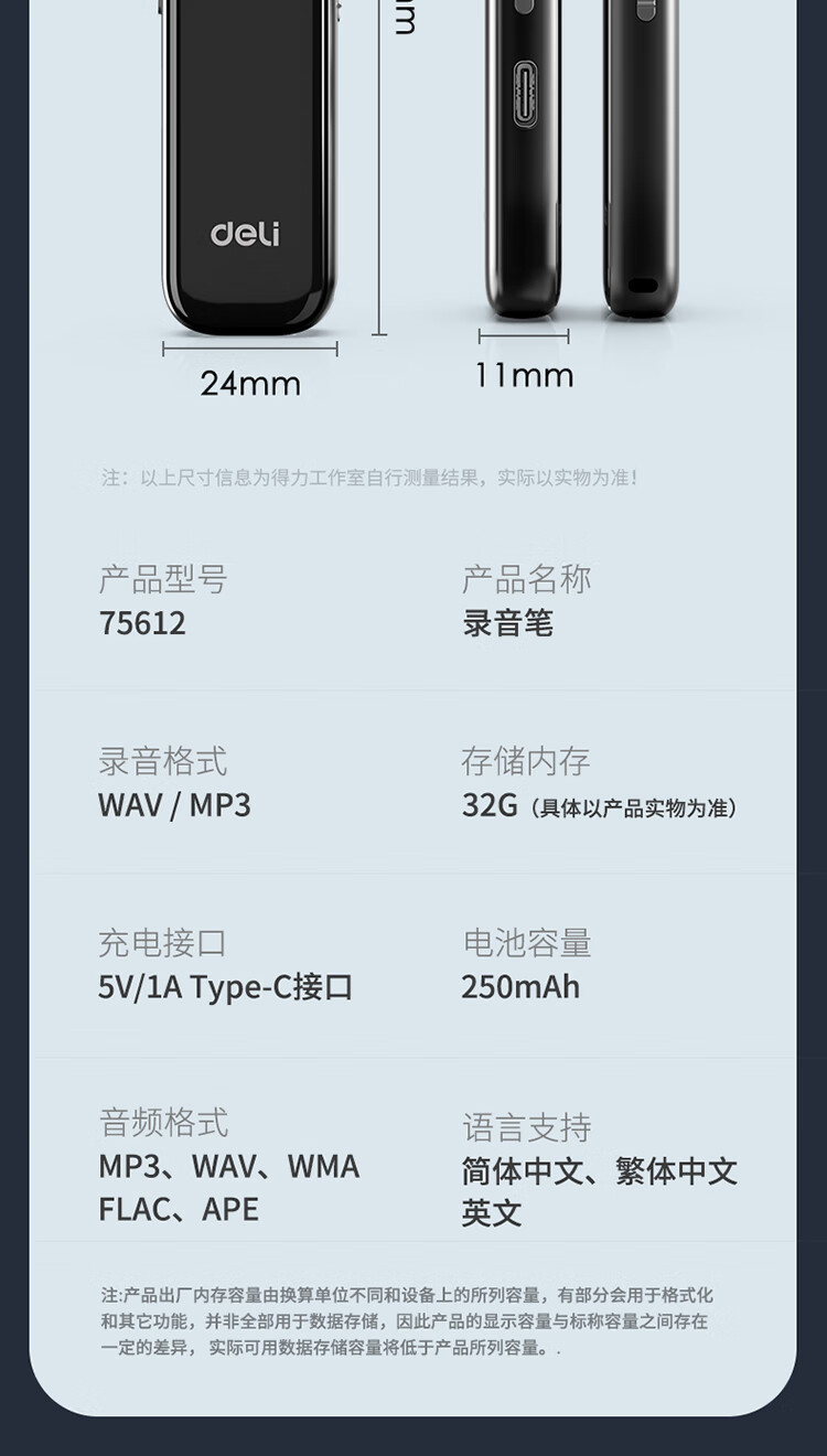 得力MP301专业录音笔智能降噪学生上课随身办公会议便携式 录音笔