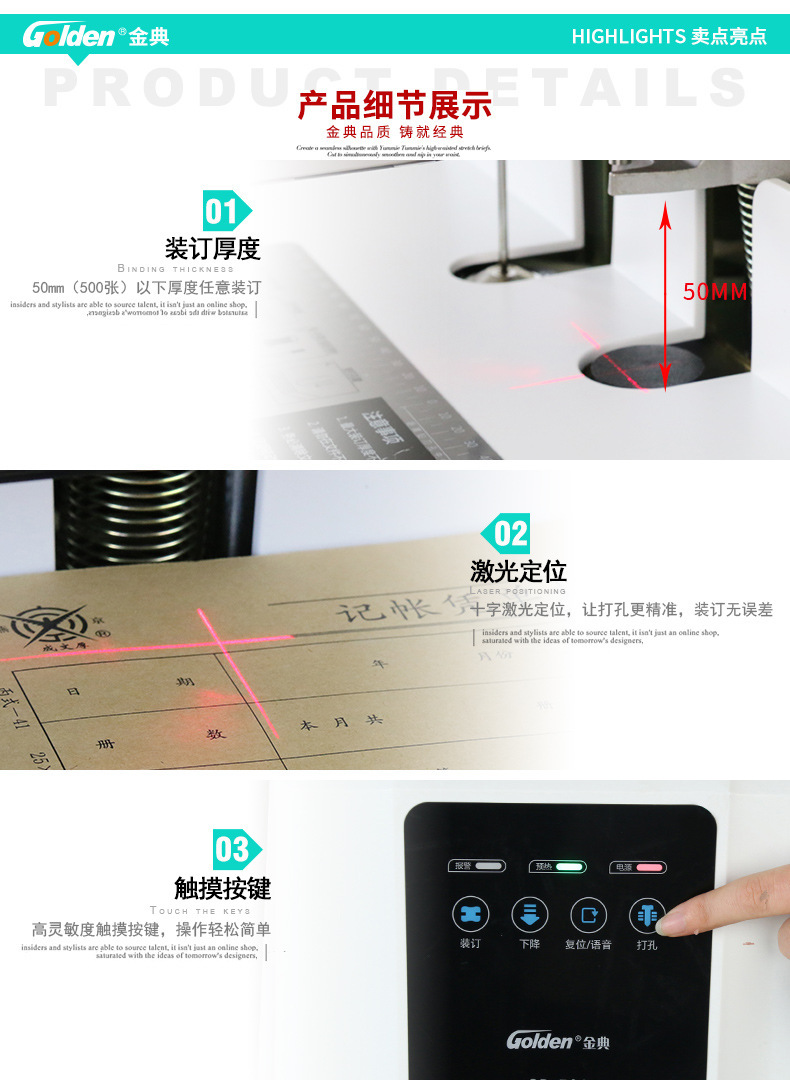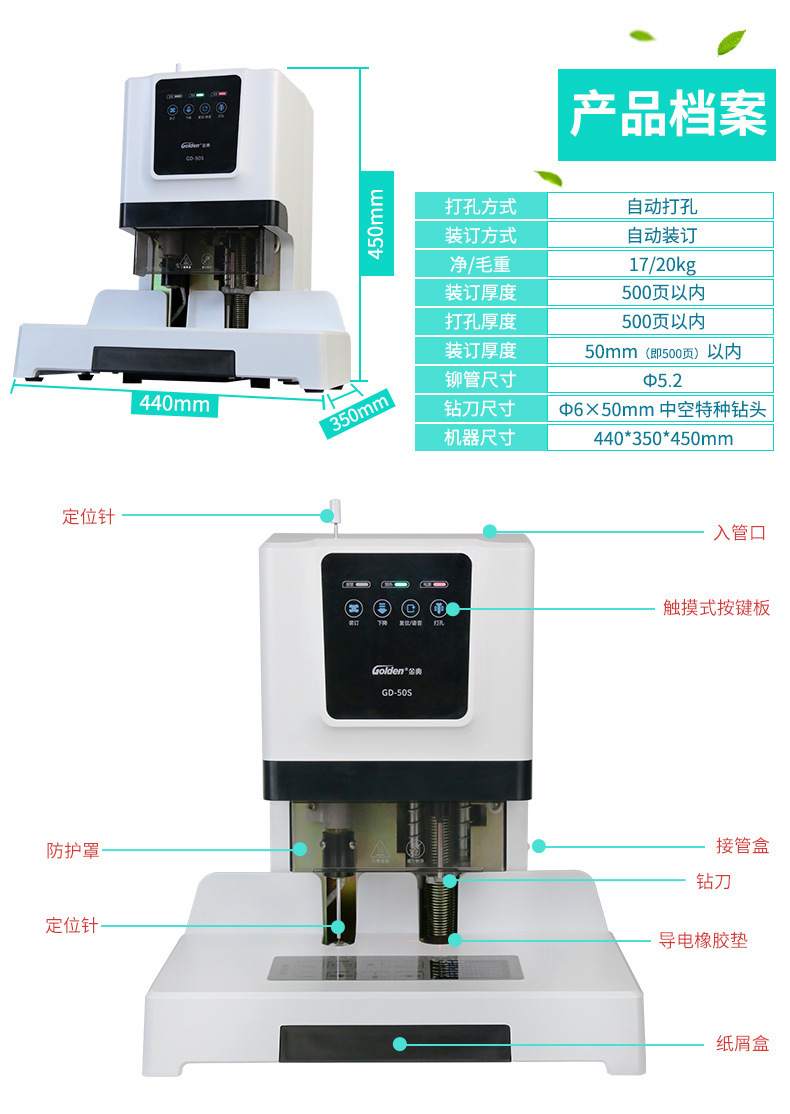 金典50S金典GD-50S全自动财务装订机 电动打孔机热熔铆管正品包邮