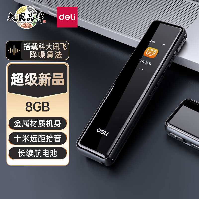 得力MP301专业录音笔智能降噪学生上课随身办公会议便携式 录音笔