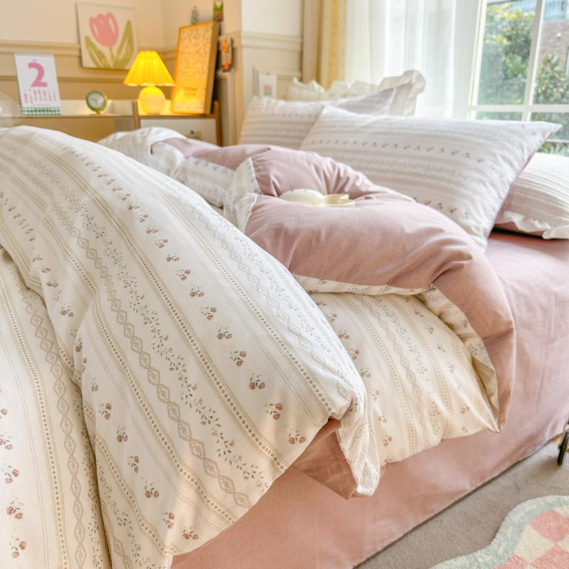 秋季田园小清新纯棉四件套全棉卡通被套床单三件套床上用品批发