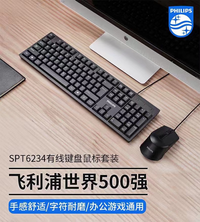 飞利浦SPK6234有线USB键盘鼠标套装台式电脑笔记本办公家用一体机