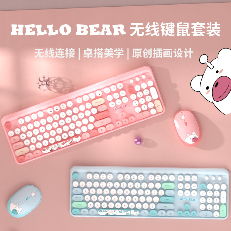 MOFII摩天手2.4G无线键盘鼠标套装彩色卡通女生办公无线键鼠套件