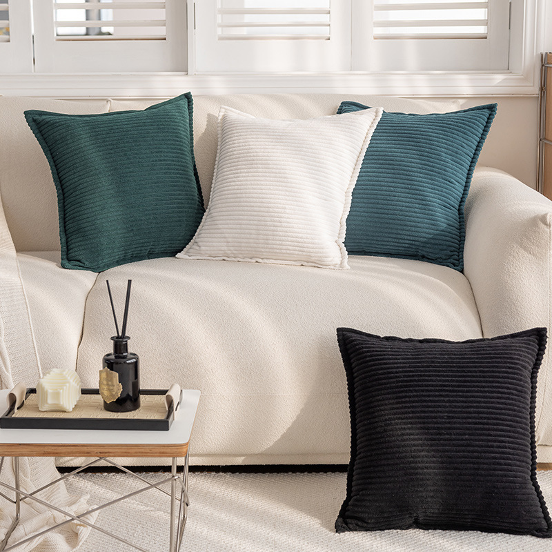 严选抱枕靠枕纯色沙发靠垫办公室腰枕午睡靠枕灯芯绒条纹抱枕套