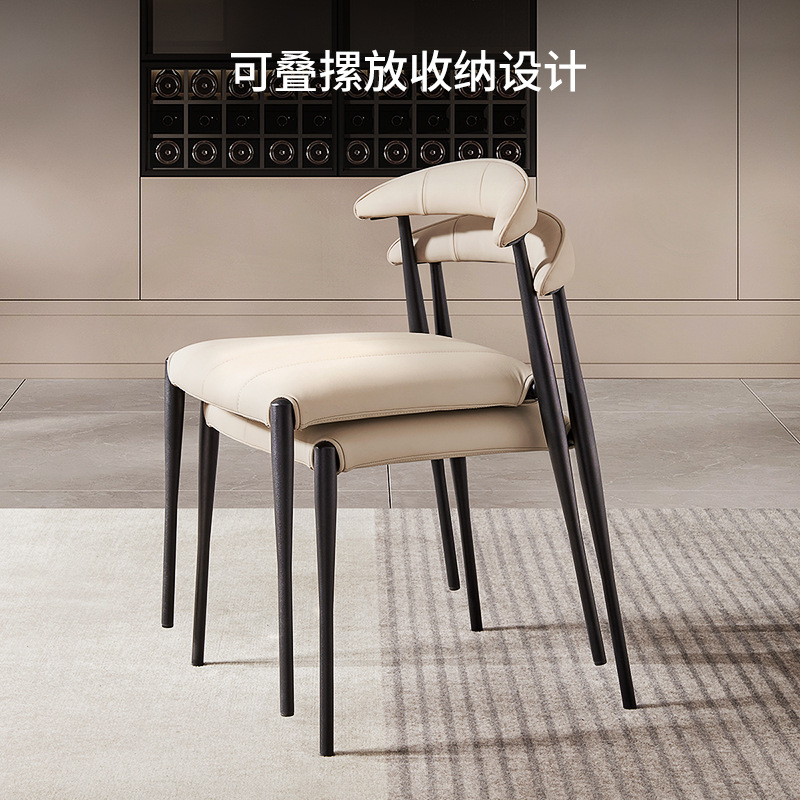现代简约客厅中古轻奢餐椅可叠放休闲家用牛角椅高级感靠背椅凳子